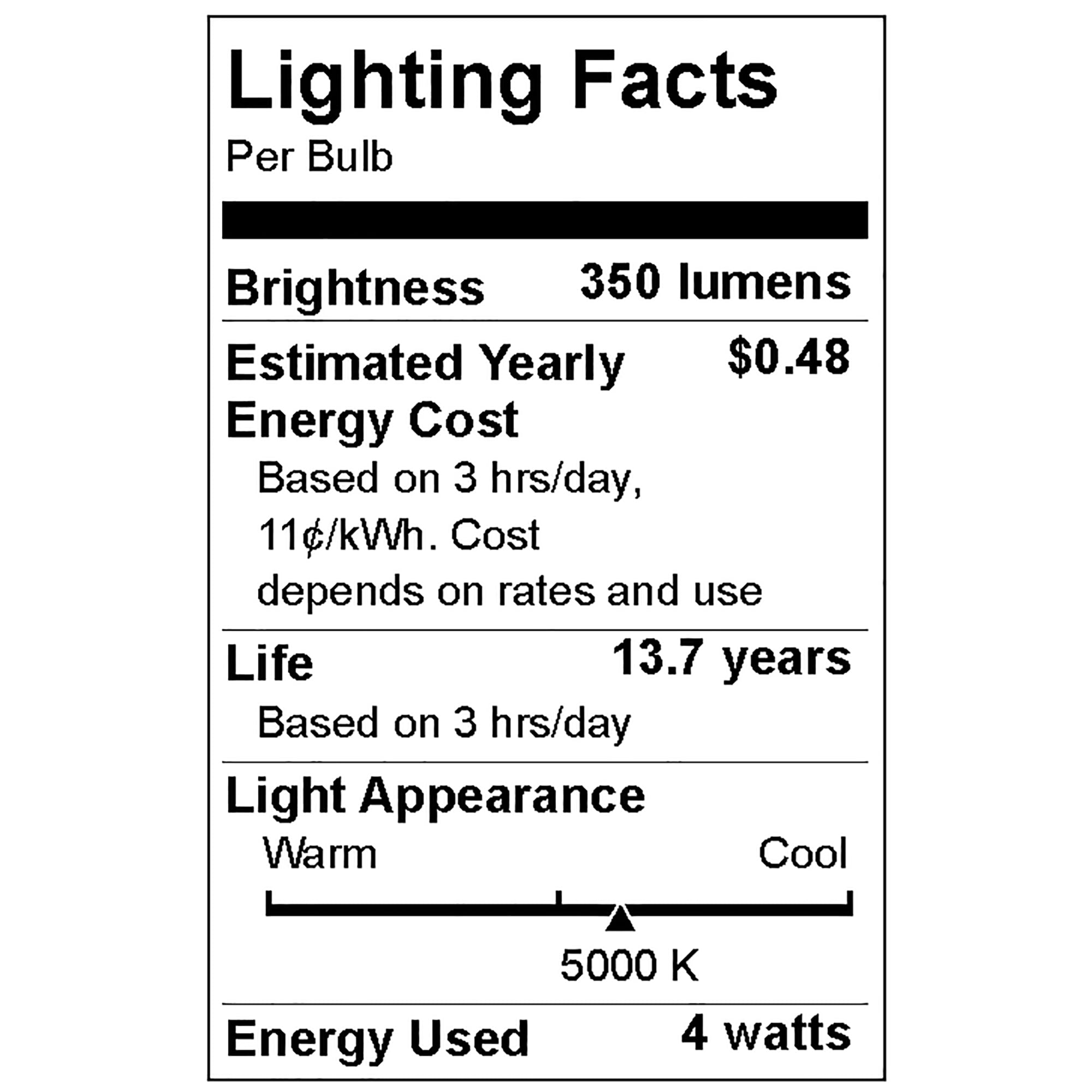 Great Value LED Light Bulb, 4.5W (40W Equivalent) B10 Deco Lamp E12 Candelabra Base, Non-dimmable, Daylight, 4-Pack: