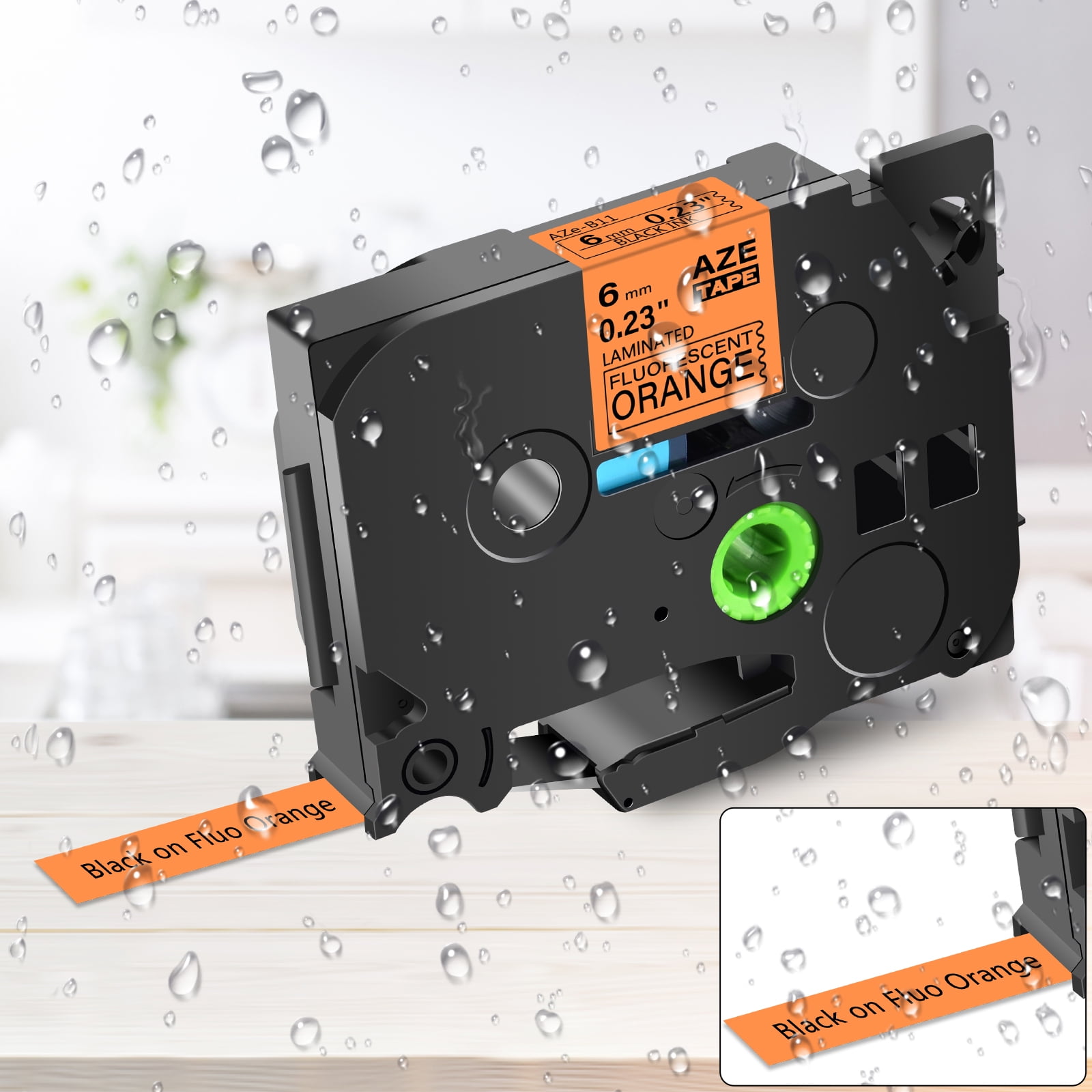 Compatible Brother TZe-B11 TZeB11 TZB11 TZ-B11 6mm Black on Fluorescent Orange P-touch Label Tape