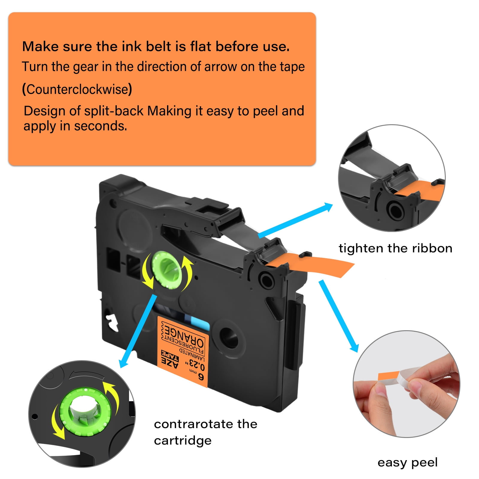 - Color: Black Text on Fluorescent Orange Background, Length: 5m (16.4 feet), Width: 6mm(0.23 inch or 1/4”)