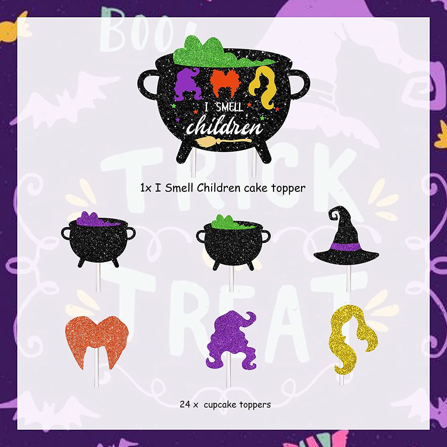 - Halloween Witches Cake Toppers Set: Package include 1pc I Smell Children cake decor; 24pcs Halloween witches cupcake toppers. This witch themed cake decorations can make your party more mysterious and funny.