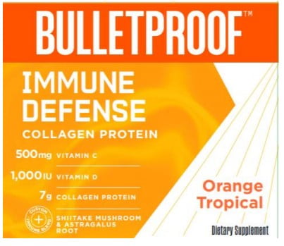 If the best defense is a good offense, Bulletproof Immune Defense Collagen Protein is the best of the best. It combines key immune-supporting ingredients with more traditionally used ingredients like shiitake mushroom, adaptogenic astragalus root and science-backed Epicor™ (dried yeast fermente). Made with 7g collagen protein, 0g of sugar, and bursting with tropical orange flavorBulletproof Merchandise