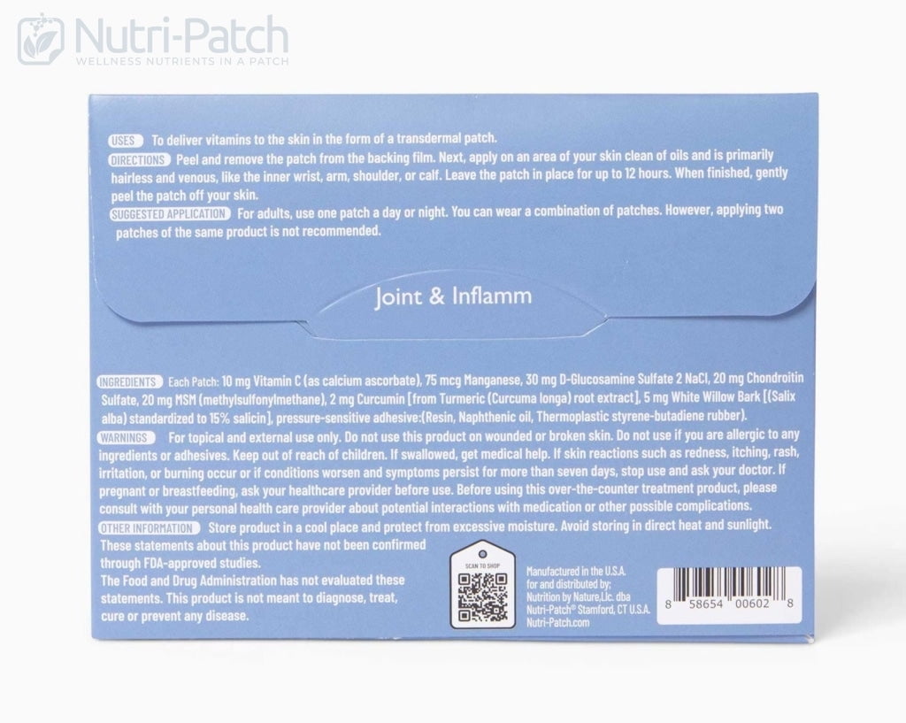 - Nutri-Patch® Joint & Inflamm Nutrients are great for those with pill fatigue or who dislike swallowing supplements.