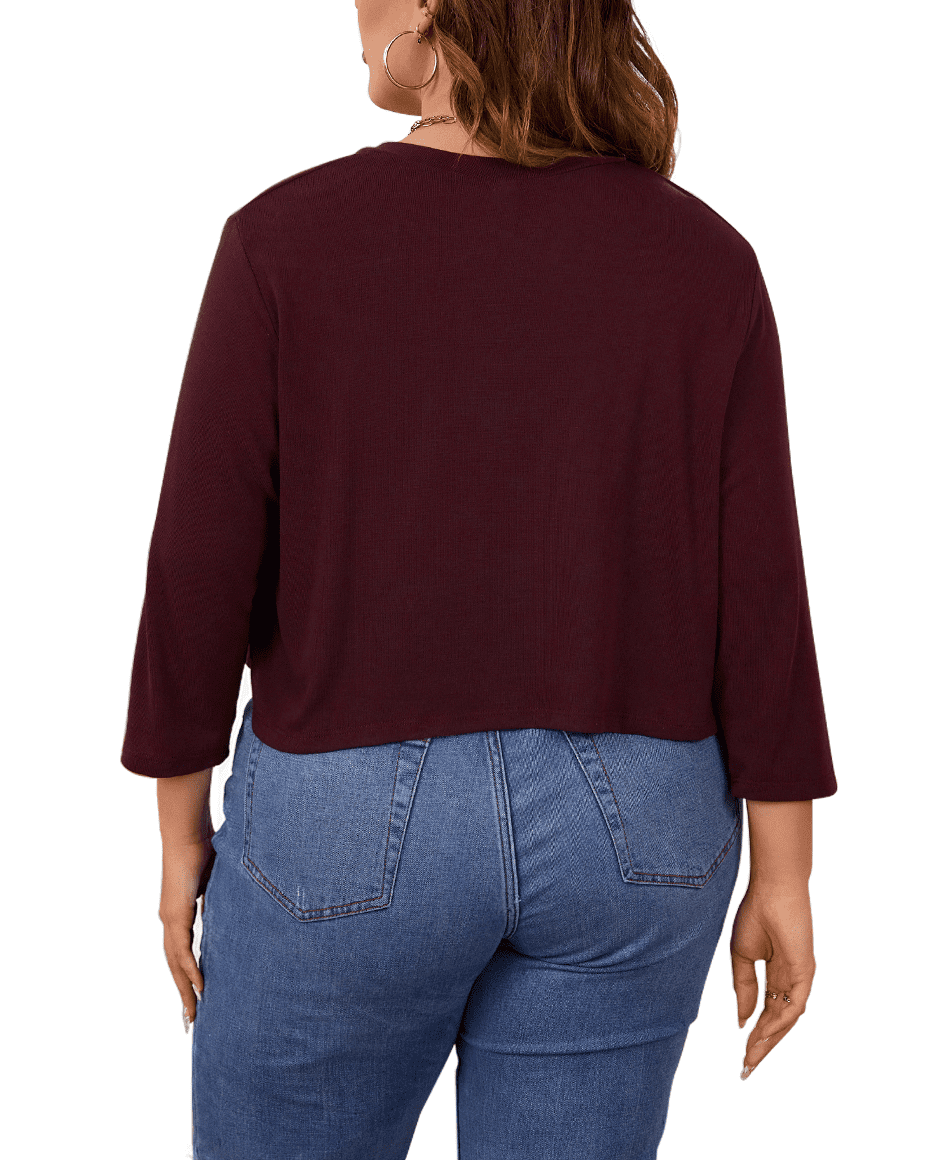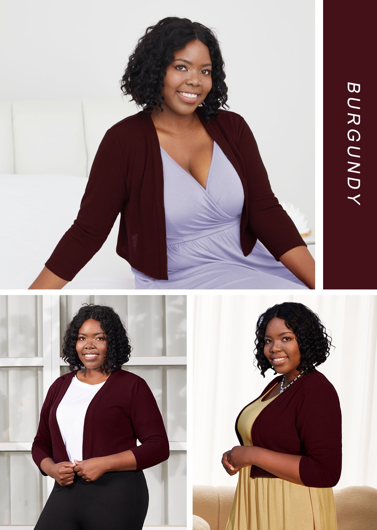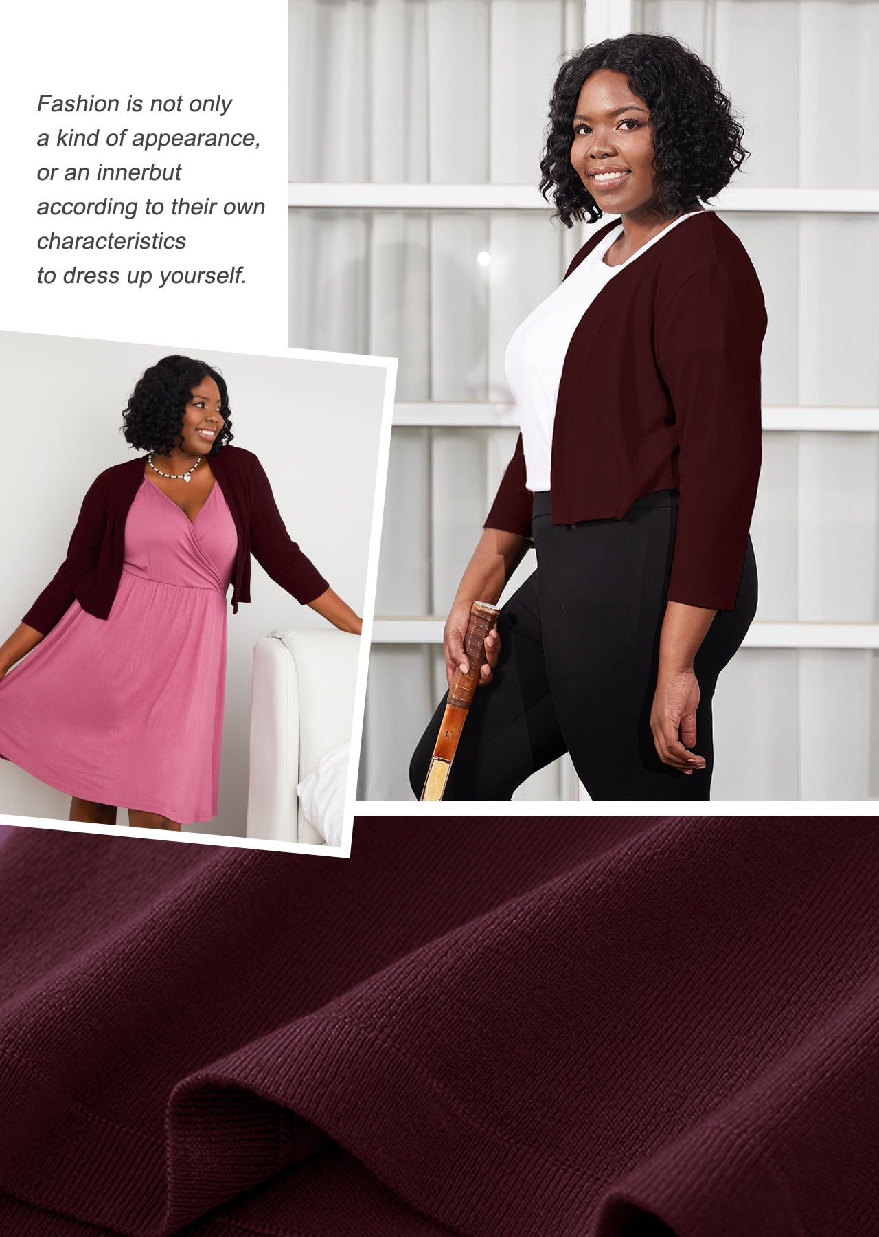 JuneFish Women’s Plus Size 3/4 Sleeve Open Front Knit Cropped Bolero Shrug Cardigan Sweater.