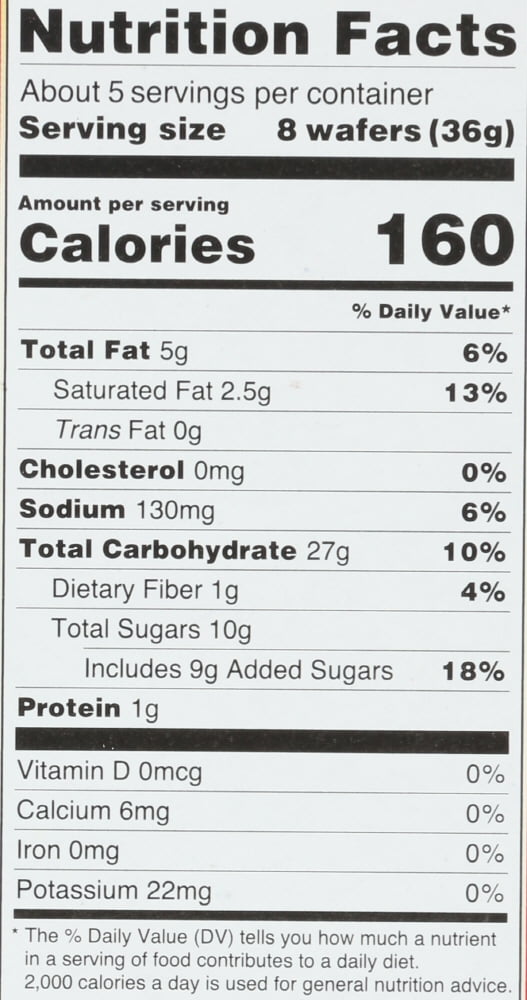 KINNIKINNICK VANILLA WAFERS ARE A TASTY SNACK EVERYONE WILL ENJOY. THESE WAFERS MAKE A GREAT SNACK OR CAN BE USED FOR MAKING BAKED GOODS. WE INCLUDE RECIPES FOR VANILLA WAFER BANANA PUDDING AND VANILLA CUSTARD ON THE PACKAGE. WE MAKE THESE IN A FACILITY FREE FROM GLUTEN, WHEAT, DAIRY, PEANUTS, TREE NUTS AND SESAME. ONE SERVING OF THESE WAFERS CONTAINS 160 CALORIES. THIS PRODUCT MAY CONTAIN SOY. PLEASE READ ALLERGEN WARNING AND FULL INGREDIENTS ON PACKAGE. CONTAINS ONE 6.3 OZ. PACK OF KINNIKINNICK VANILLA WAFERS. KINNIKINNICK FOODS BEGAN MAKING GLUTEN-FREE PRODUCTS FOR THE LOCAL FARMERS MARKET IN 1991. AS A FAMILY BUSINESS, WE CONTINUE TO FOCUS ON PROVIDING THE HIGHEST QUALITY, INNOVATIVE AND BROADEST SELECTION OF NOT ONLY GLUTEN-FREE FOODS, BUT ALSO DAIRY, PEANUT AND TREE NUT FREE PRODUCTS. WE HOPE THAT YOU ENJOY THESE PRODUCTS AND FIND OUT WHY OUR FAMILY AND OUR DEDICATED EMPLOYEES SAY, GLUTEN-FREE HAS NEVER TASTED SO GOOD.Kinnikinnick Vanilla Wafer, 6.3 Oz