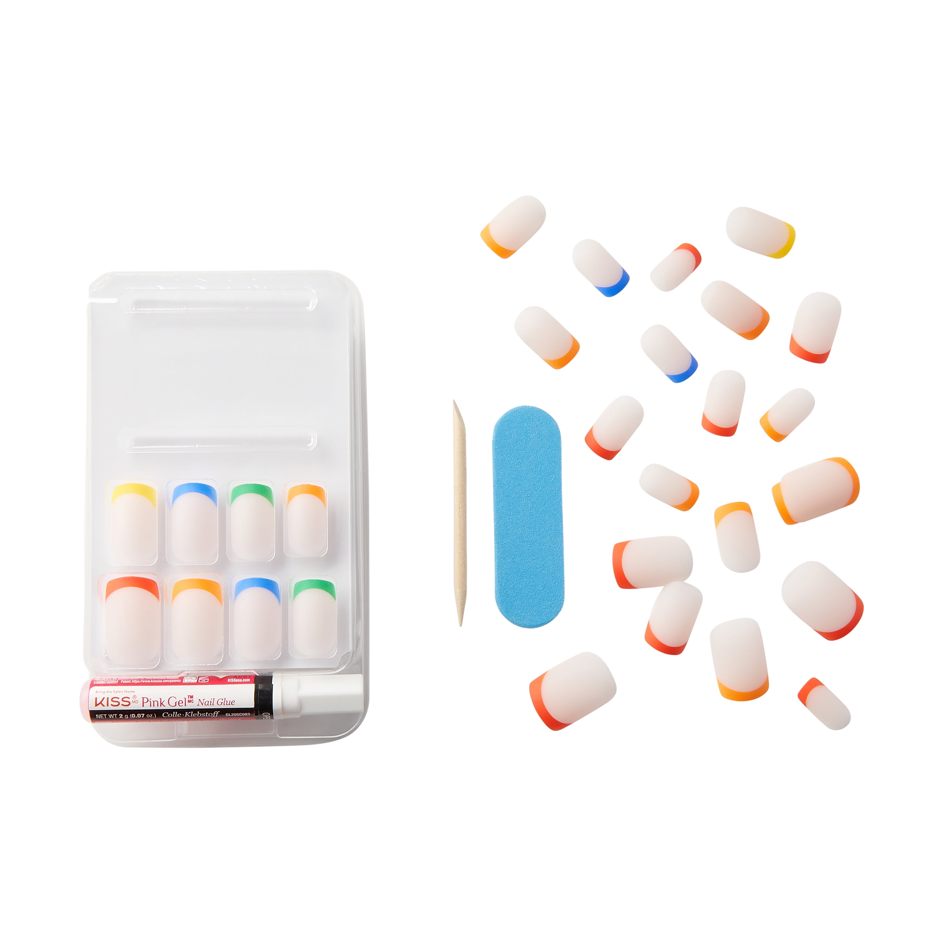 - Includes: 28 Nails, Glue (2g), Mini File, & Manicure Stick.