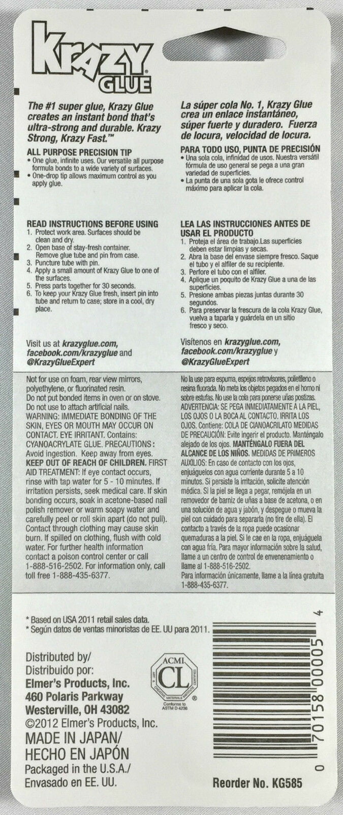 Krazy Glue Super Glue All Purpose Precision Tip 0.07oz (2gs) Crazy Glue Has a One Drop Applicator and a Resealable Stay Fresh Container. Is a Great Adhesive for Ceramic, Plastic, Wood, Glass, Porcelain, Metal, Leather, Rubber, Vinyl. Convenient, High quality trust brand of Super Glue to Fit your needs and keep your adhesive bindings strong.