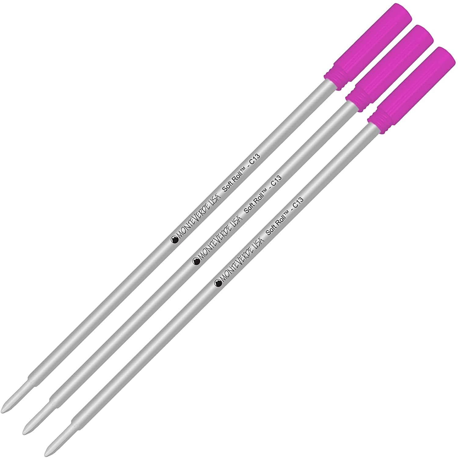 - 3 Pack – Monteverde® Soft Roll™ Ballpoint C13 Paste Ink Refill Compatible with most Cross® Style Ballpoint Pens – Pink (Medium Tip 0.7mm)