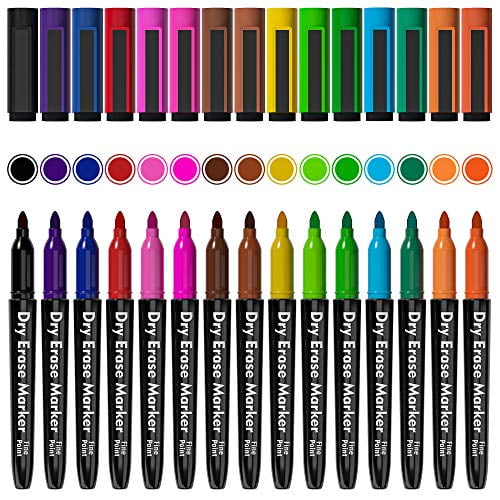Lelix 15 Colors Dry Erase Markers, Magnetic Whiteboard Markers Fine Point with Eraser for Back to School, Office, Home Perfect for Writing on White Board, Dry Erase Board, Mirror, Glass