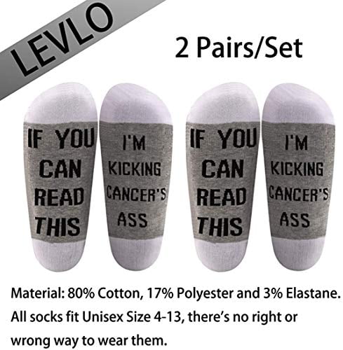 LEVLO Funny Cancer Awareness Fighter Socks If You Can Read This I’m Kicking Cancer’s Ass Cotton Socks Cancer Survivor Gift (2 Pairs/Set – Ankle – 1)