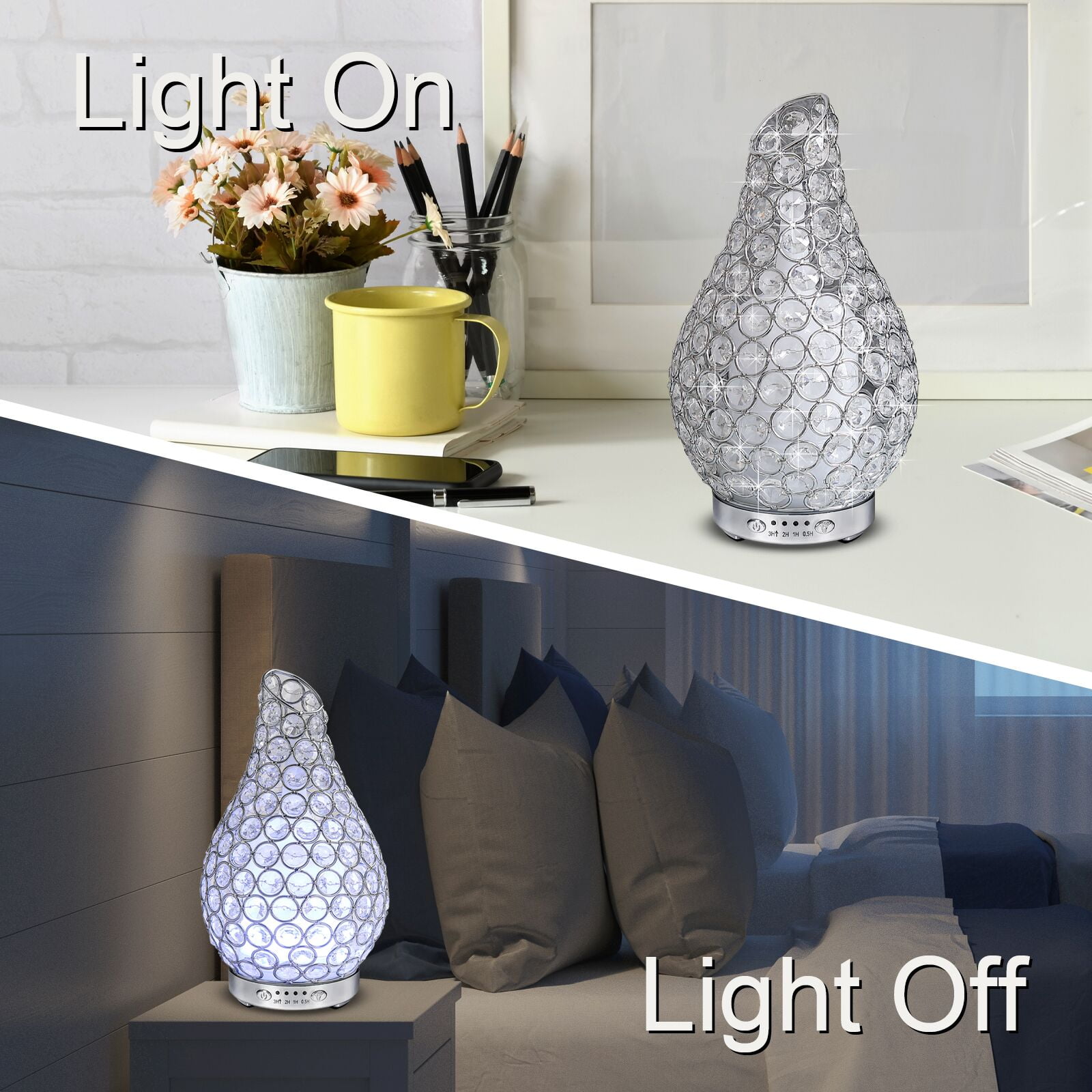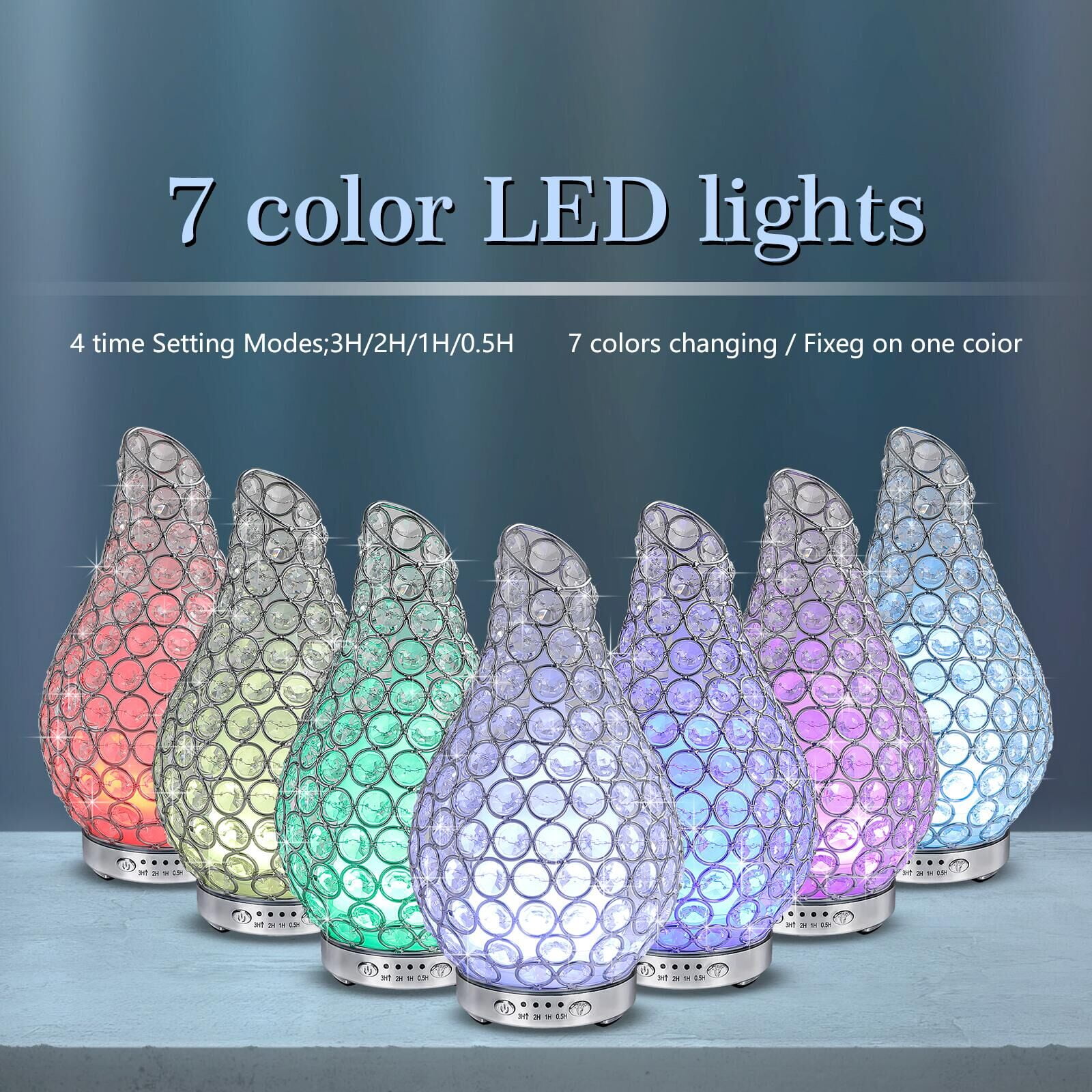 Specifications:◆ Item type: Essential oil diffuser◆ Material: PP + ABS + crystal◆ Color: As shown◆ Quantity: 1 Pcs◆ Shape: Vase◆ Power supply mode: Adapter◆ Plug type: US◆ Input voltage: 120V◆ Working voltage: 24V DC◆ Rated power: 12W◆ Tank volume: 120 ml◆ Item size: 4.9*9 inch(D*H)◆ Package weight: 680g/24oz