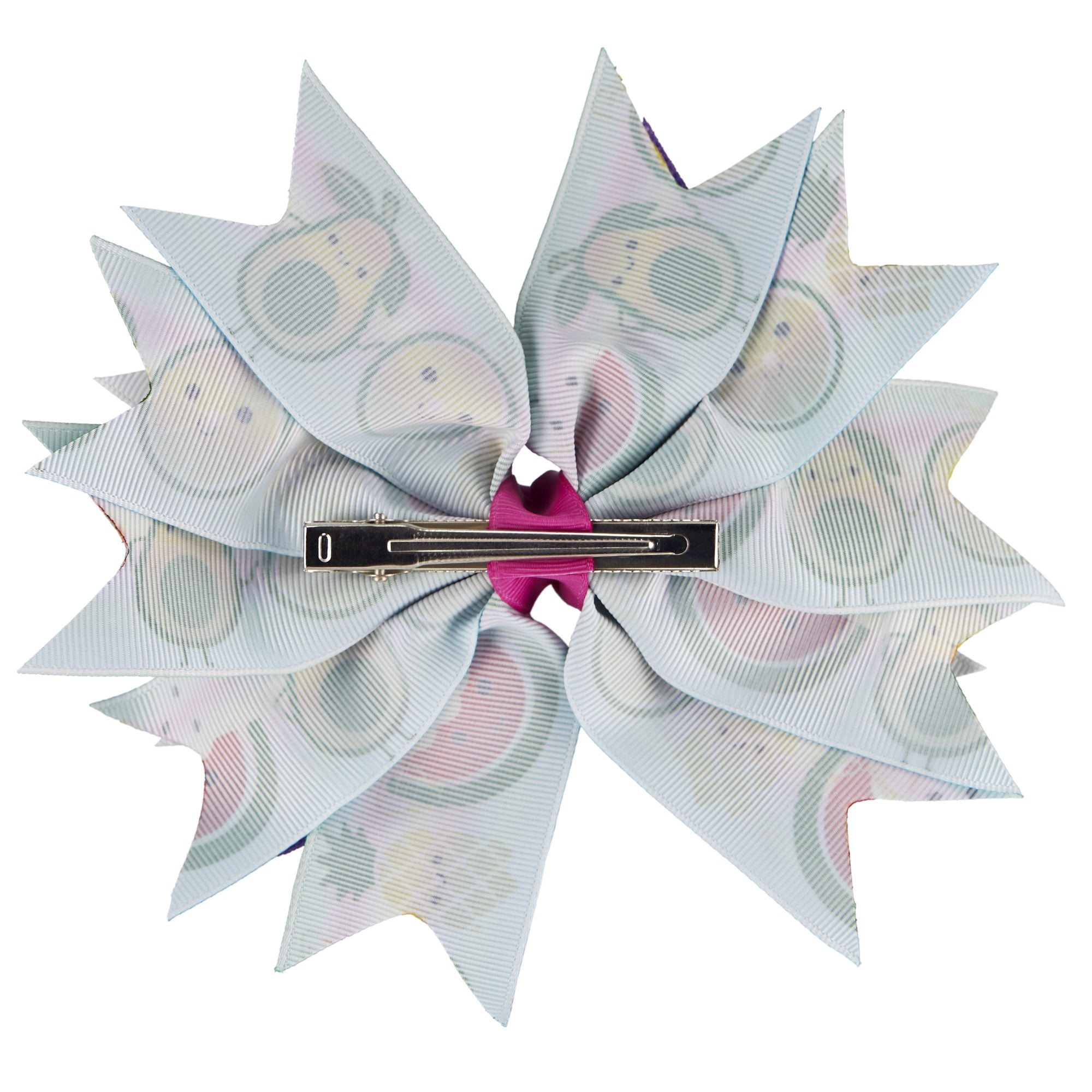 A bow that stands out from the crowd. This bow is detailed with layers of grosgrain ribbon, metallic gold fruit details, glitter ribbon in pink and gold. Say hello to smiling pineapples and watermelon that give this bow the sweetest touch. • Easily glides onto hair • Does not tug or pull at the hair • Stays put throughout the day • Perfect for everyday wear or special occasions • Can be worn with many different hairstyles • Made of quality materials • Suitable for girls of all ages