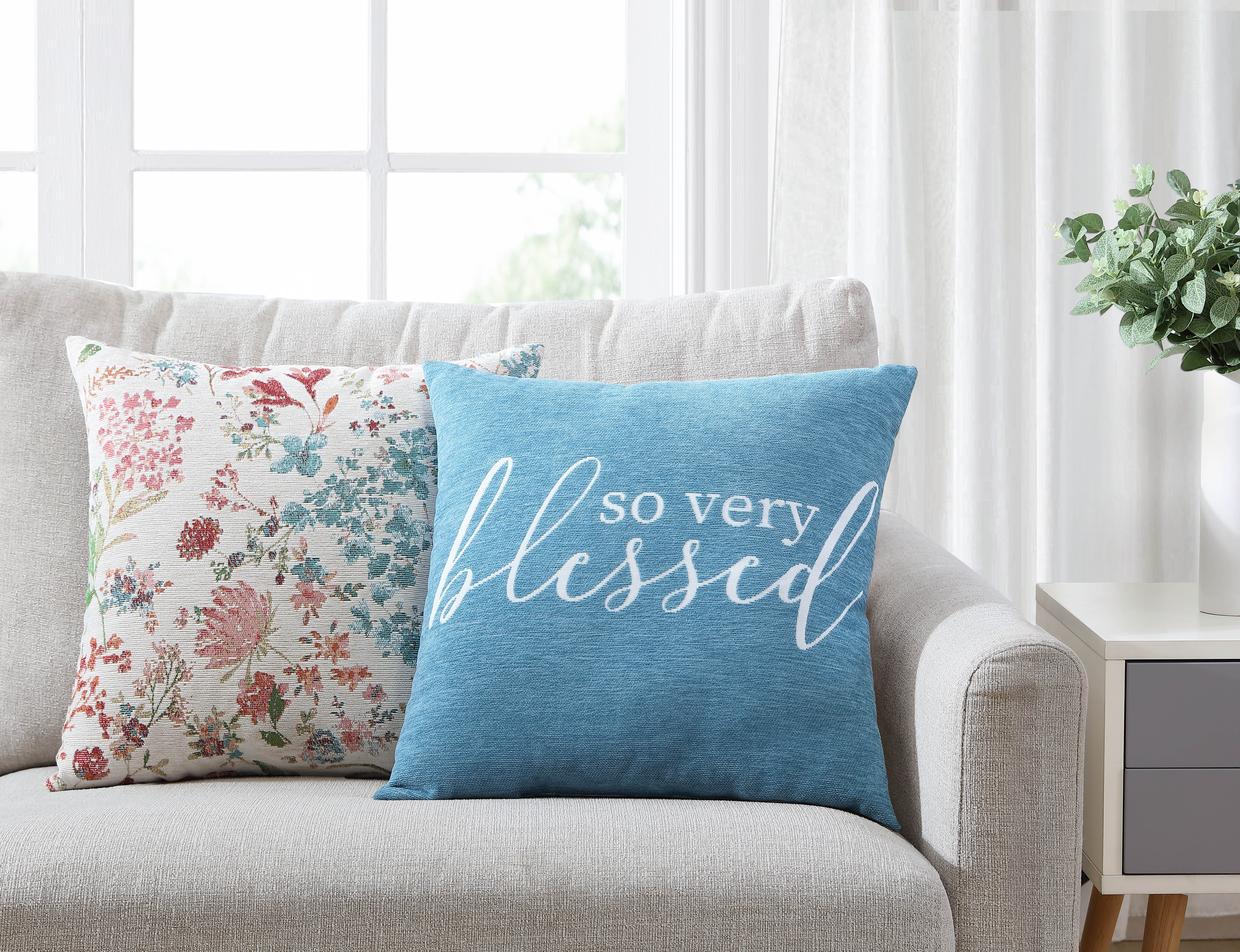 Mainstays Decorative Throw Pillow, Chenille Jacquard So Blessed, Square, Multi, 17" x 17", 2Pack: