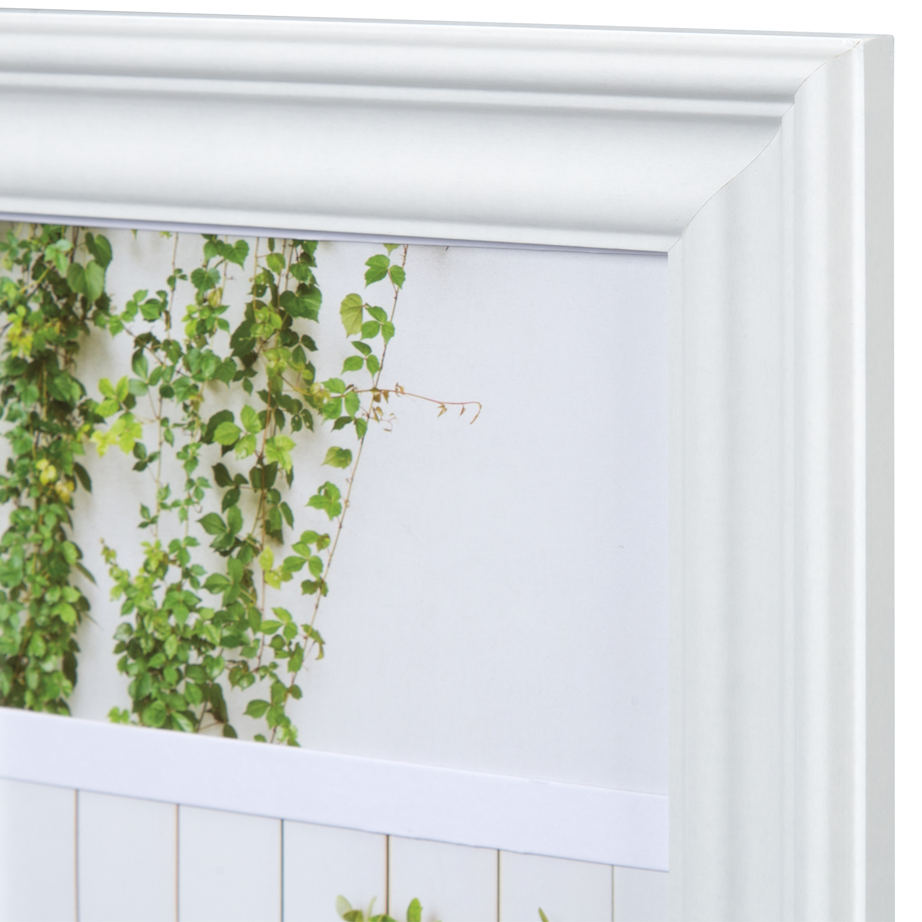 Bring out the best of your photos with this Traditional White finished picture frame. You can combine with other frames in this collection to create your own photo display hanging on a wall or on your tabletop. This frame is matted to fit (3) 4×6 photos.