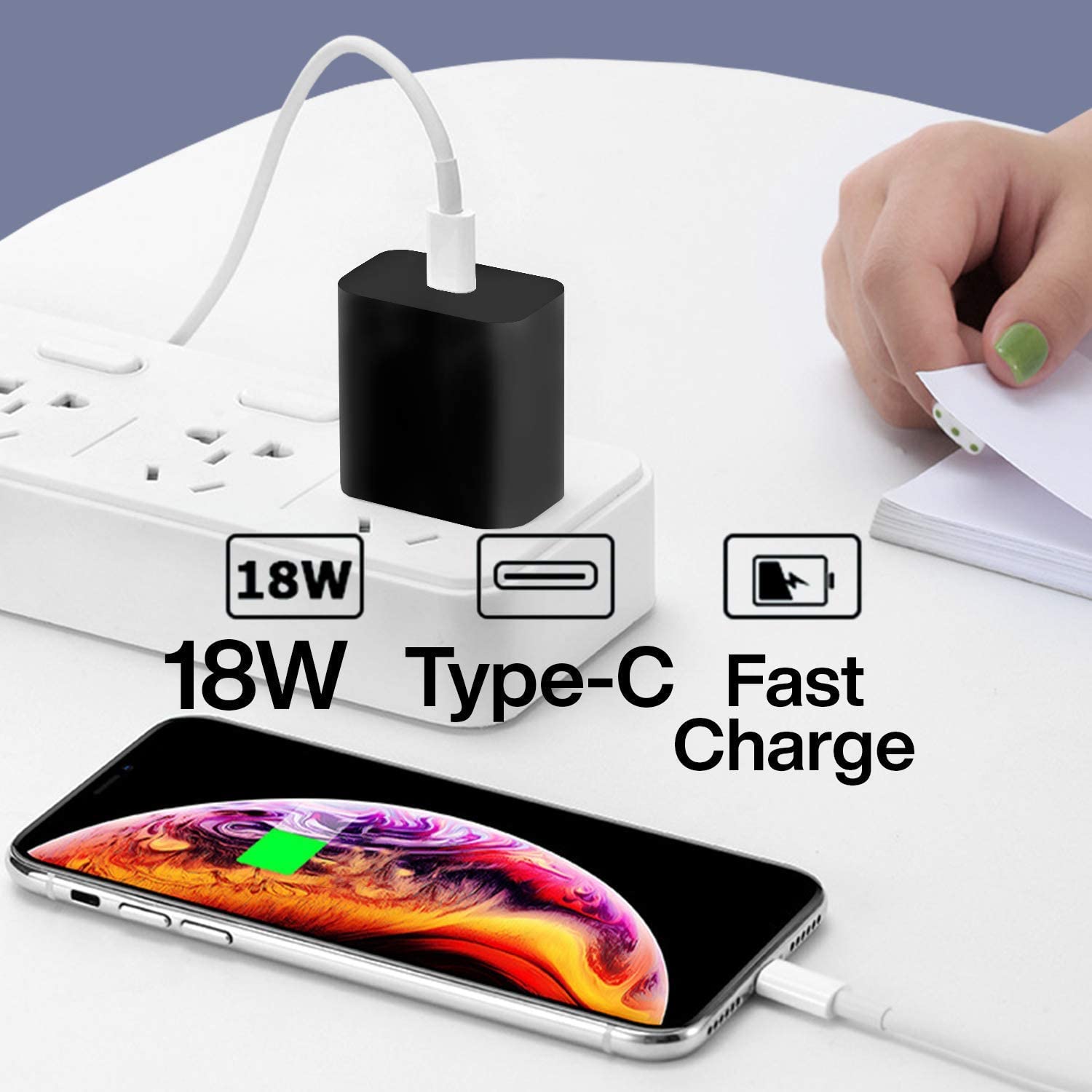 18W USB-C Power Adapter & 10 Feet Braided USB-C to Lightning Cables • Lightning charger use original Aple chip, automatic chip recognition function. • Perfect wide compatibility for your new iPhone or iPad. NO error message popping up. • Function: Charging and data transmission • Power Delivery Support: Delivers a high-speed charge while connected to a USB-C PD output device Compatible Devices: • iPhone 11 Pro Max – iPhone 11 Pro – iPhone 11 • iPhone Xs, iPhone Xs Max, iPhone XR • iPhone X, iPhone X Max • iPhone 8, iPhone 8 Plus, iPhone 7, iPhone 7 • iPhone 6, iPhone 6S, iPhone 6 Plus, iPhone 6S Plus, iPhone 5, iPhone 5S, iPhone 5C • iPod Touch 5, Nano 7, iPad Mini, iPad Mini 2 iPad Mini 3 iPad 4, iPad Air 18W USB C Power Adapter & Lightning to USB-C cable Set Package Included • 18W USB-C Power Adapter • 10 Feet Braided USB-C to Lightning Cable Product Future • Supports High-Speed Charging with USB-C Power Delivery Wall Charger • Universal Compatibility (Supports Fast Charger Most iPhone and iPad) • Braided Lightning to USB-Cable ensures stable charging Fast Charging technology • 18W USB C (PD) Power Adapter with Braided Lightning to USB C cable delivers a high-speed charge from 0% to 50% in 30 mins. • USB-C Power Delivery charger access fast-charging for iPhone 11, iPhone 11 Pro, 11 Pro Max – iPhone 8, 8 Plus, X, XS, XR, XS Max, and Up models. • Quickly charge your latest iPhone to keep your device always power up. Safe Charging & Total Protection USB-C Power Adapter provide total protection for you and your devices. 18W USB C iPhone 11 Pro Charger set offers Fast, efficient charging at home, in the office, or on the go Advanced Power-Delivery technology provides Built-in safe Charging technology protect from over-current, short circuit, over-voltage and temperature sensing.