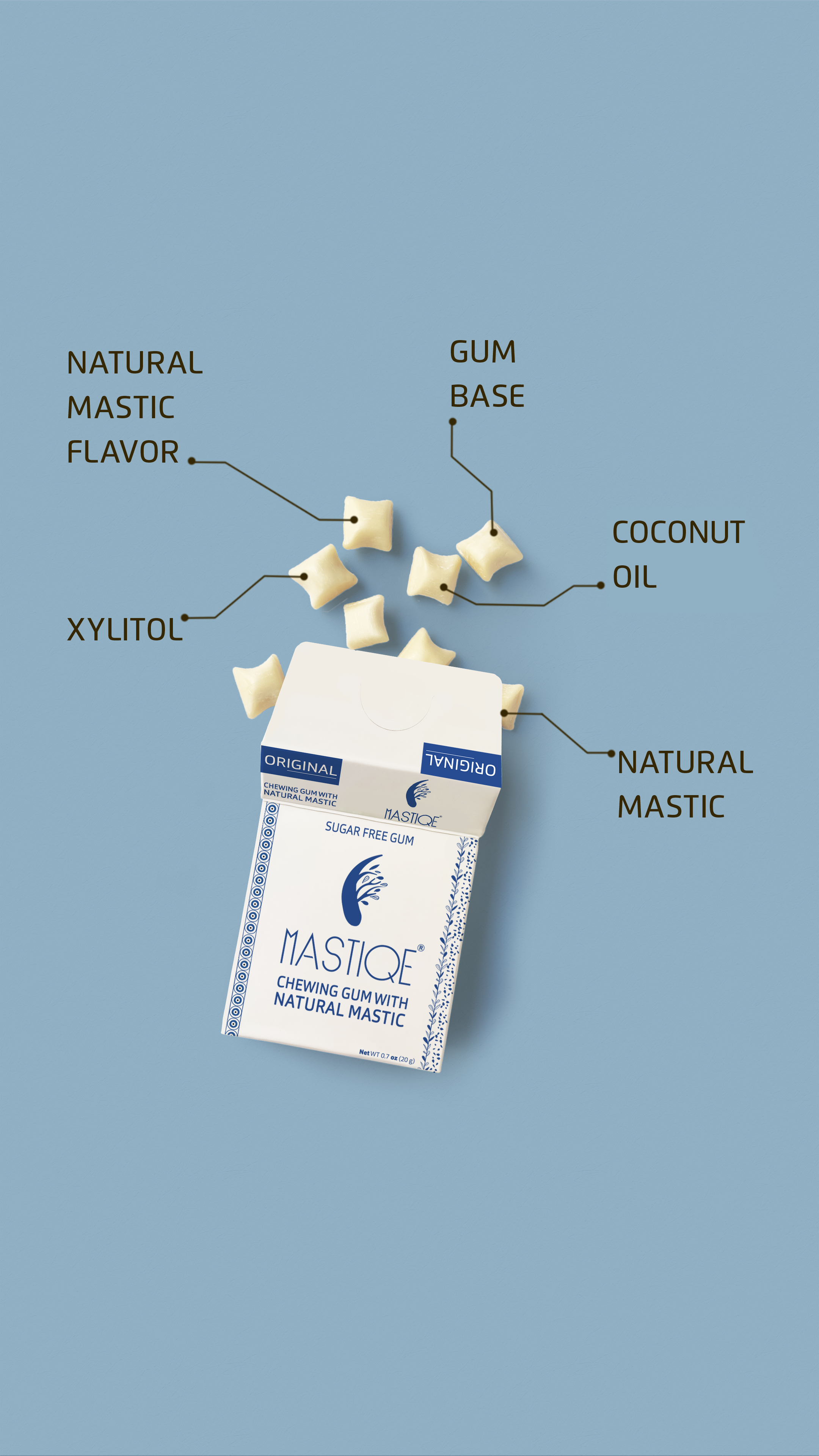 - No Artificial Flavors or Sweeteners. Mastiqe is sugar-free and naturally sweetened with xylitol and pure mastic harvested on the Island of Chios.