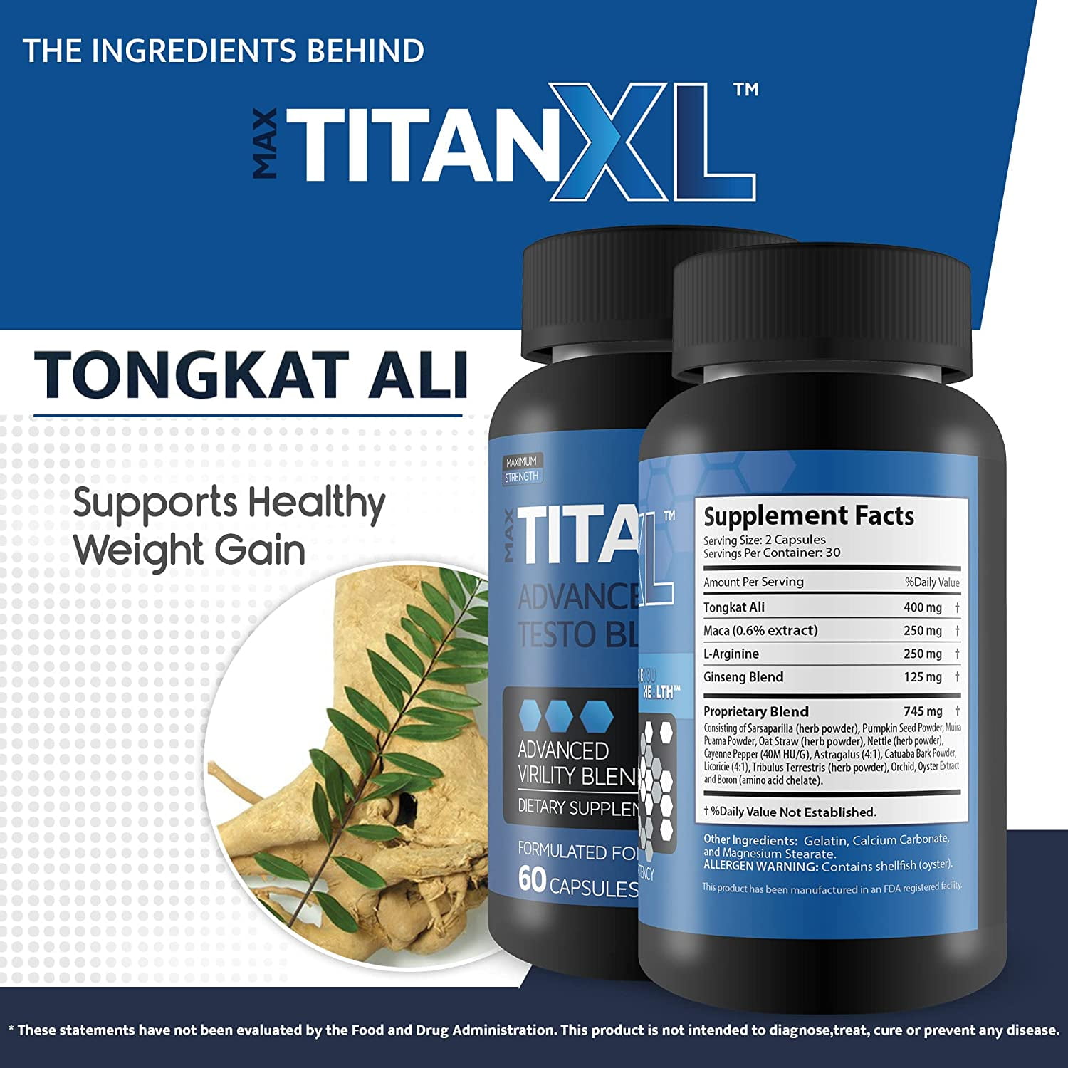 That’s why Max Titan XL Testosterone Booster was created. Our maximum strength testosterone booster pills contains clinically tested ingredients like Tongkat Ali, Maca, Tribulus Terrestris, and others that may help boost your natural and free testosterone levels. It also contains L-Arginine which help boost blood flow by increasing nitric oxide levels. With daily use, a healthy diet, and moderate exercise men have seen increased weight loss, gains in muscle mass, faster recovery times, and improved libido. Can be taken as pre workout, post workout, mornings, or evenings.