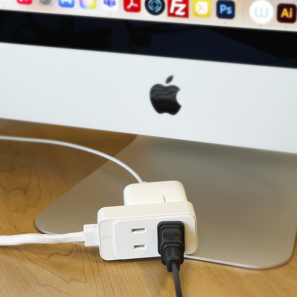 - 9 ft. 2-prong three-outlet braided extension cord featuring a flat plug for hard-to-reach outlets.