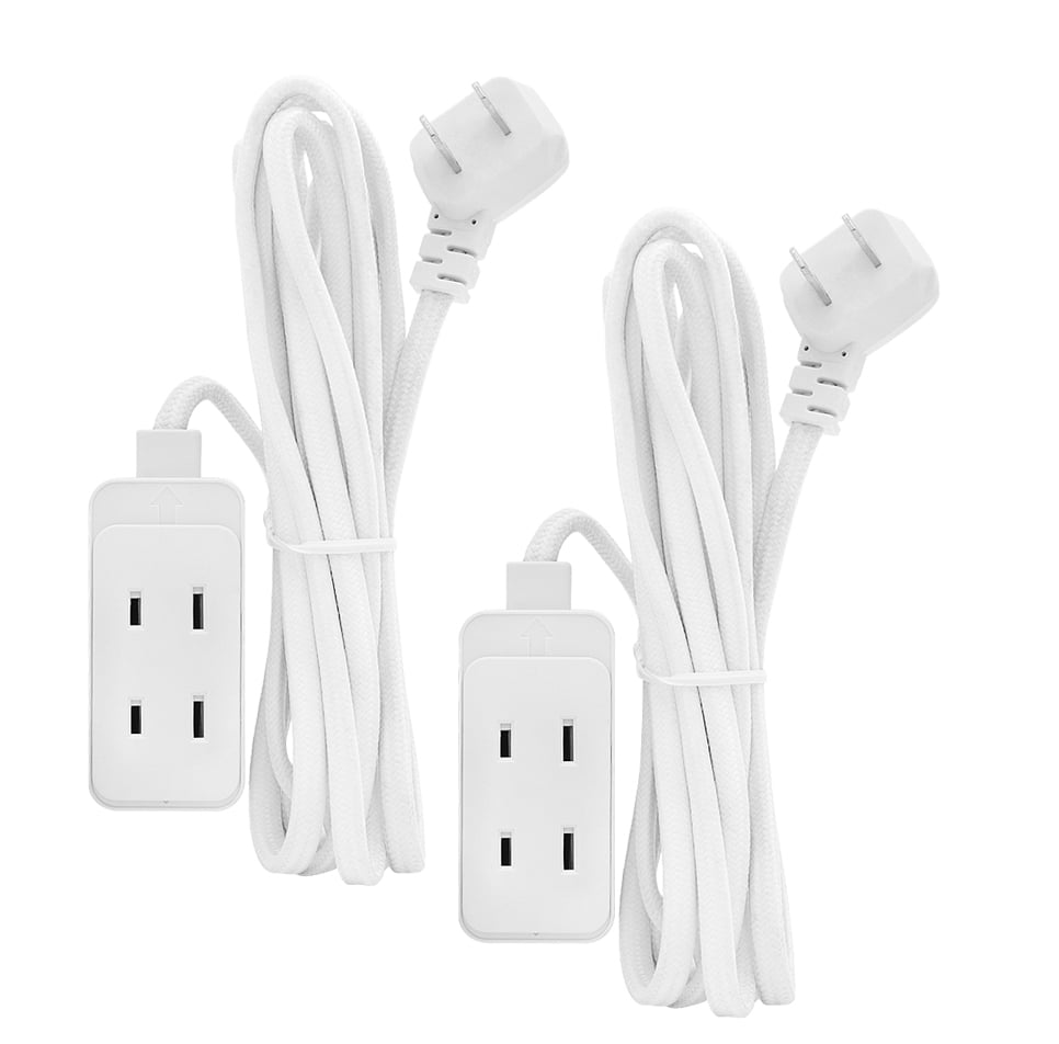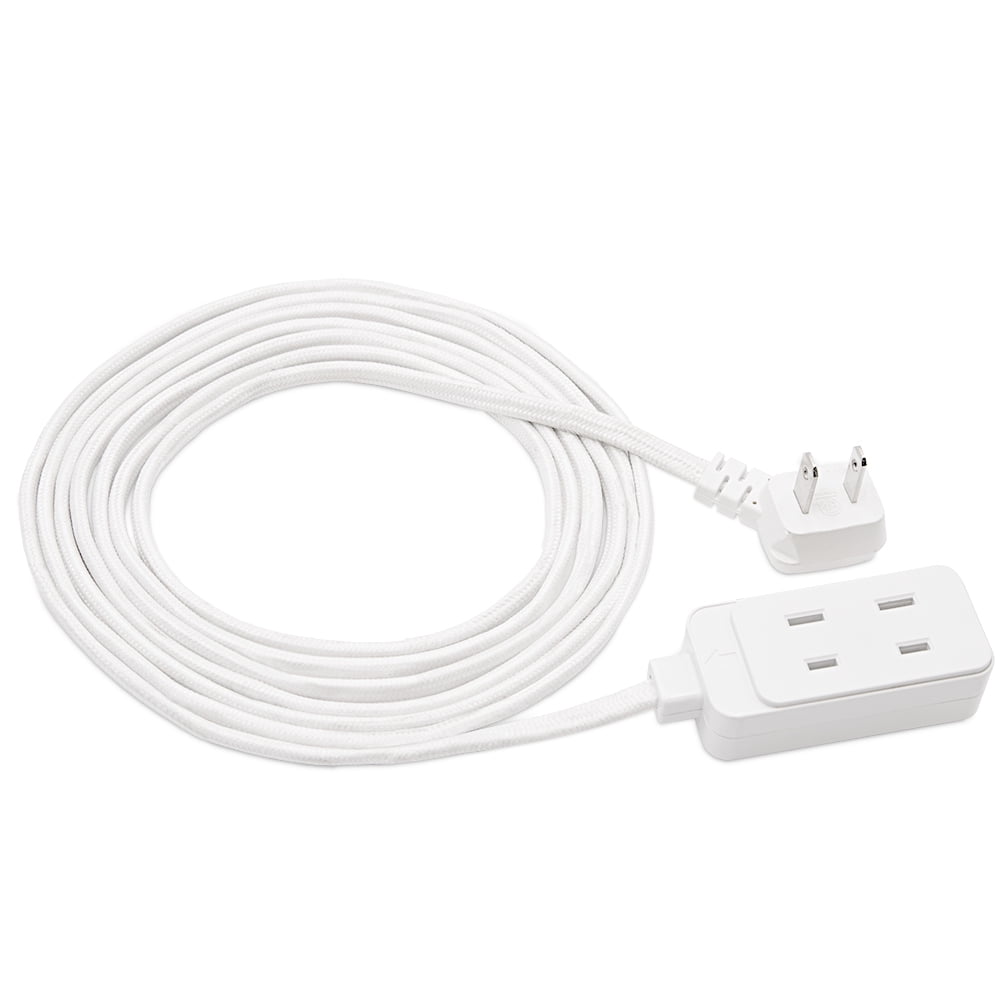This 9 ft. 3 outlet extension cord features a white braided cord for extra durability. The white woven fabric cord is a unique design to match your decor as well as add an unexpected element of design to your home or office while decreasing the likelihood of bending and tangling. This extension cord features three 2 prong outlets with cover slides to protect the outlets not being used. This extension cord is ideal for lamps, appliances, phone chargers and electronic equipment. The flat 2-prong plug makes it easy to connect to hard-to-reach outlets, where space is limited, allowing your furniture and media to sit closer to the wall. This design is ETL listed and offers equal parts of fashion and function for your bedroom, kitchen, office, living room, and more. This 3-outlet extension is backed by Maxxima for 1 Year.