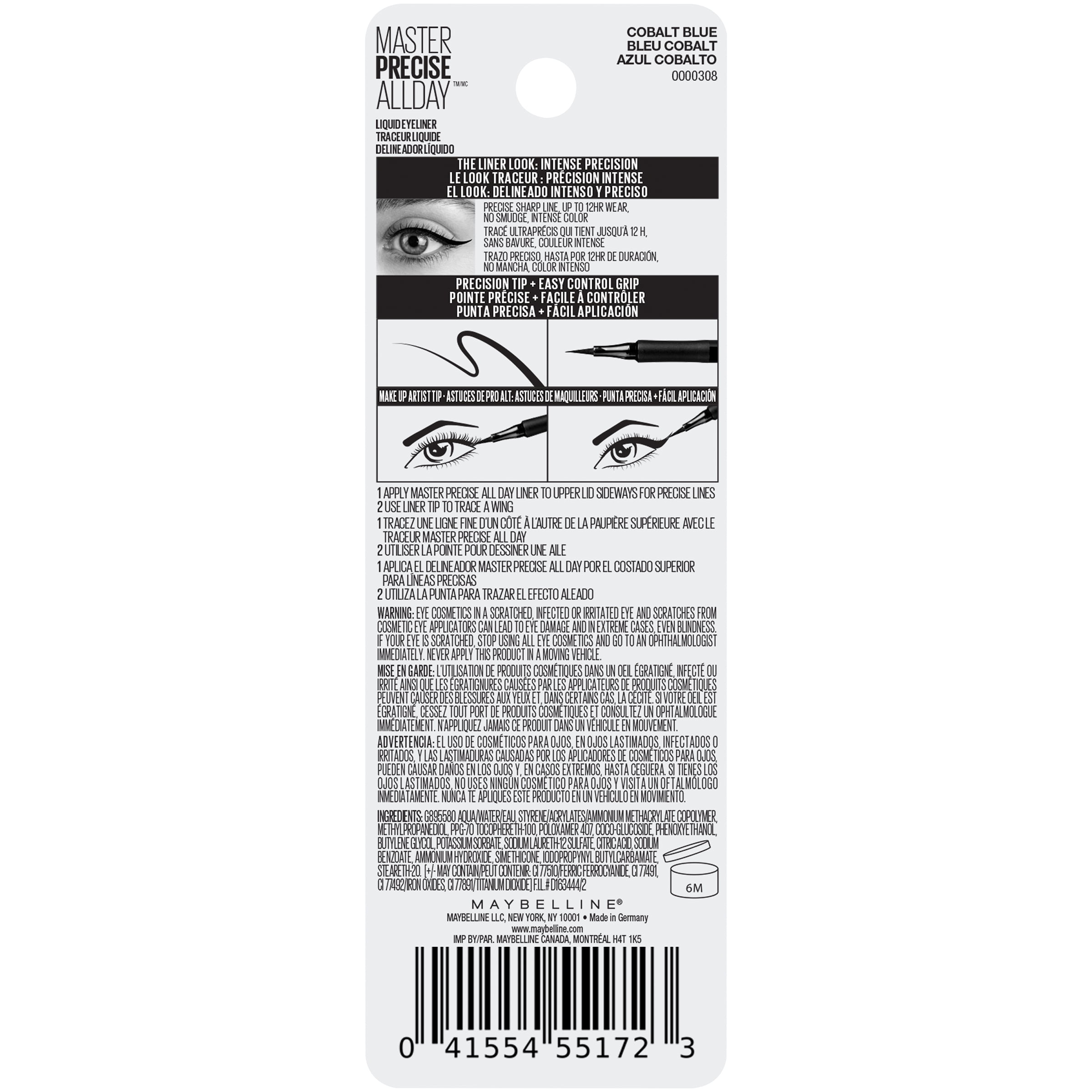 Maybelline New York’s eye studio master precise liquid eyeliner delivers intense precision for the most defined line. The liquid eyeliner features an ultra-fine 0.4-millimeter brush felt tip to deliver a precise definition in one single stroke. The ink intensity pen’s continuous flow provides smooth even lines for the perfect cat eye. The highly pigmented formula will keep your eyeliner look last all day, for up to 12 hours. The waterproof and smudge-proof liquid eyeliner is fragrance-free and is ophthalmologist and dermatologist tested. Suitable for sensitive eyes and contact lens wearers. Packaging may vary.