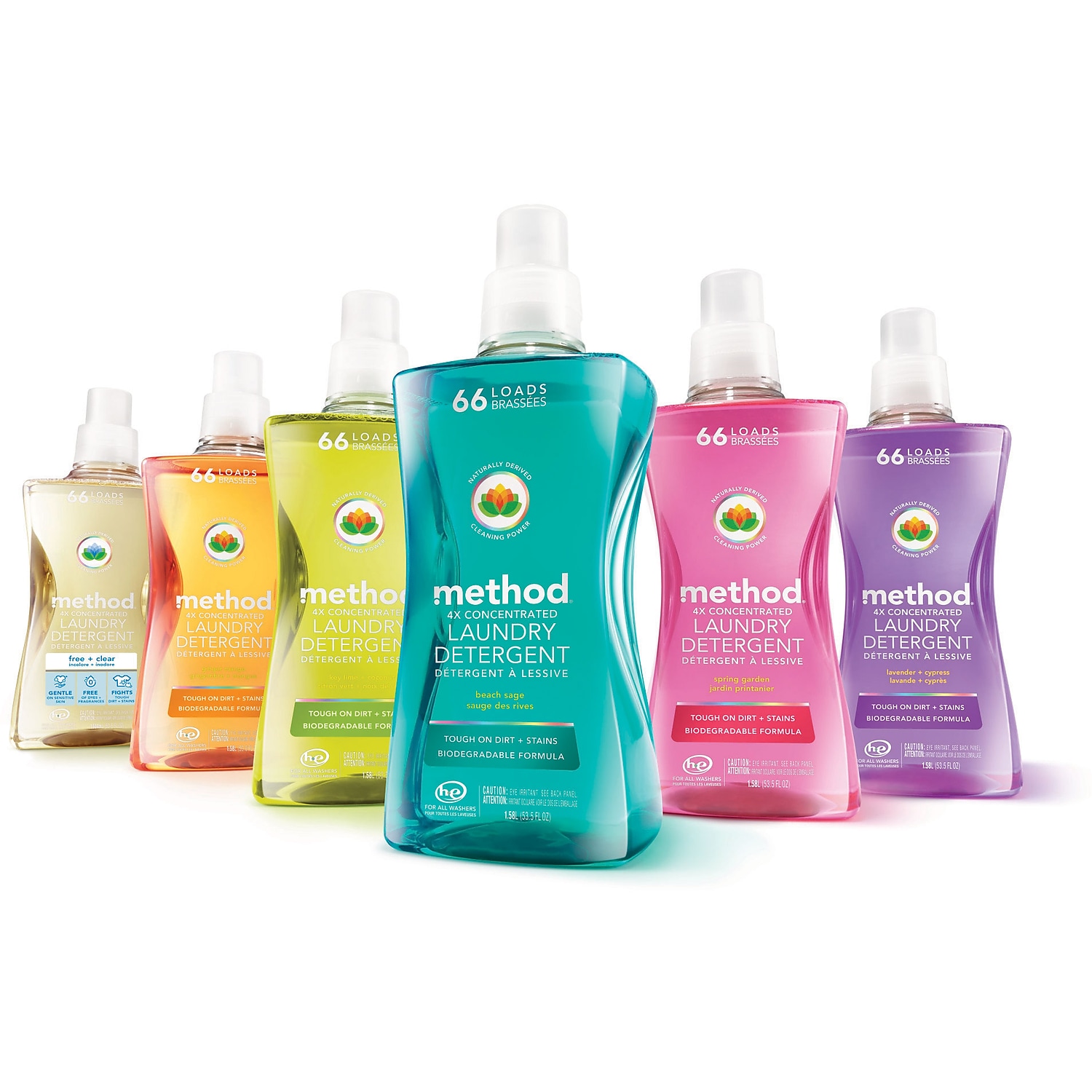 You love coffee, red wine and chocolate milk shakes. Just not on your clothes. The naturally derived cleaning power in this recyclable bottle fights tough dirt and stains. So your whites stay white and your colors stay bright. Now you can indulge in your favorite foods without having to worry about your wardrobe.Method Laundry Detergent, Beach Sage, 53.5 Ounces, 66 Loads
