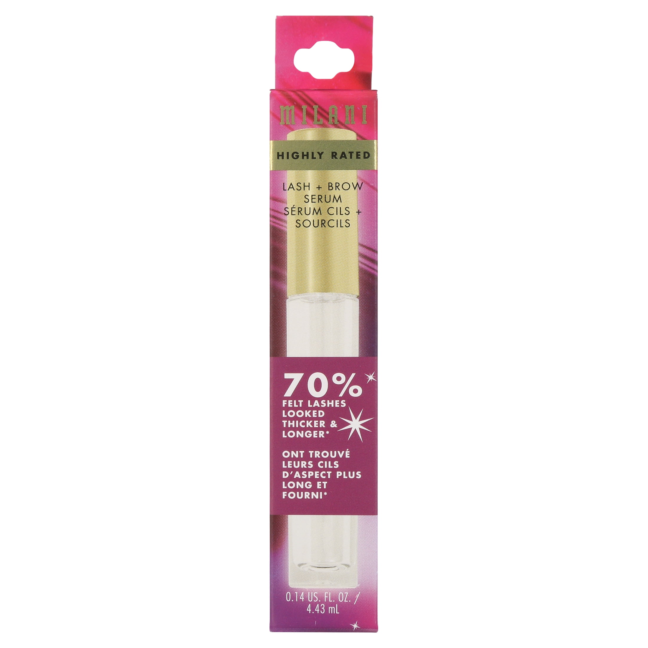 Out of this world lashes & brows? Yes, please. Milani Highly Rated Lash + Brow Serum is a nightly serum designed to condition and strengthen hair for healthier-looking lashes and brows. When ed continuously to stain results, it helps improve the appearance of lash and brow thickness for longer, fuller-looking lashes and brows over time. The precise brush allows for targeted lash and brow application.