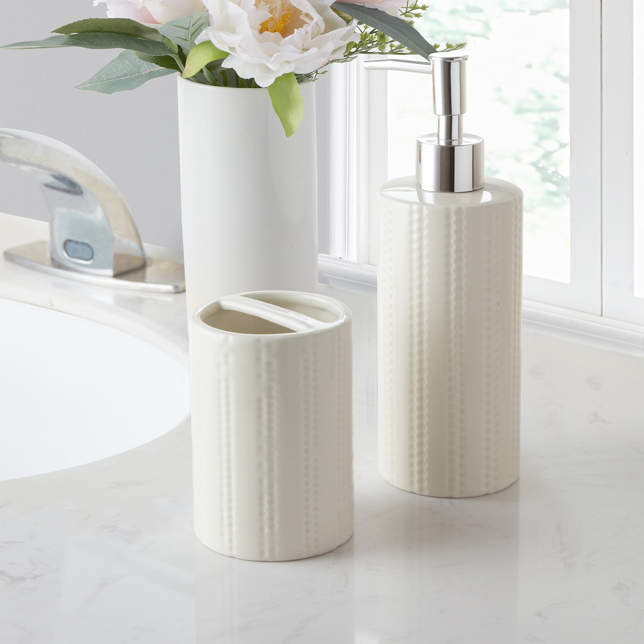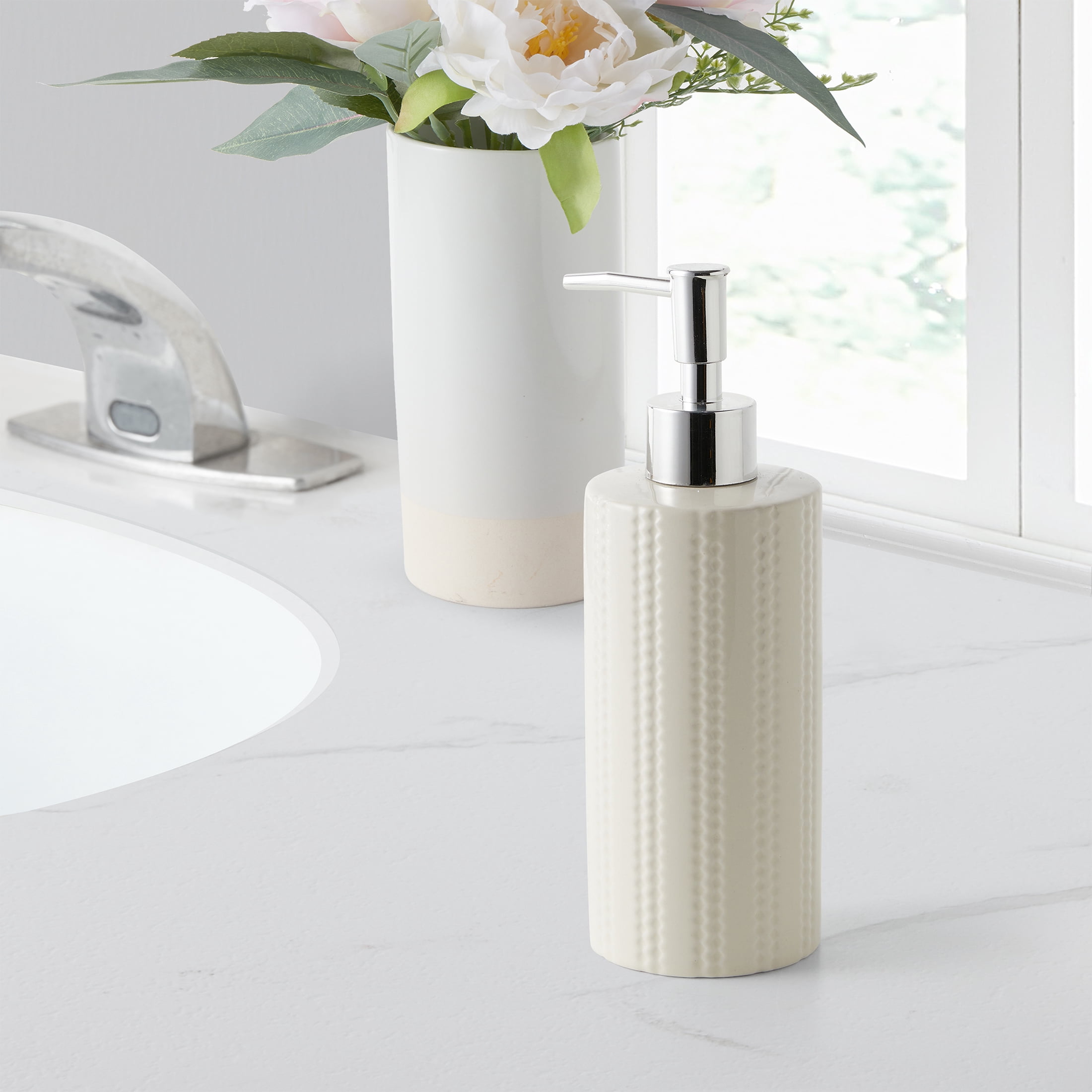 My Texas House Alice 12 oz. Ceramic Embossed Stripe Soap Pump, Ivory