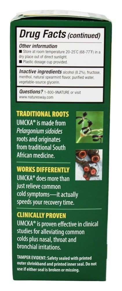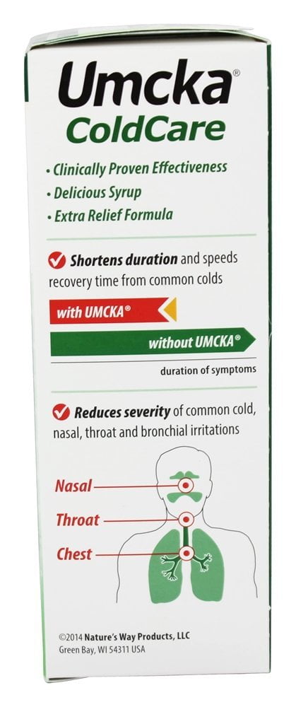 Homeopathic – Shortens the duration and reduces the severity of throat, nasal and bronchial irritations.Nature’s Way Umcka Cold Care Menthol Syrup, 8 Oz