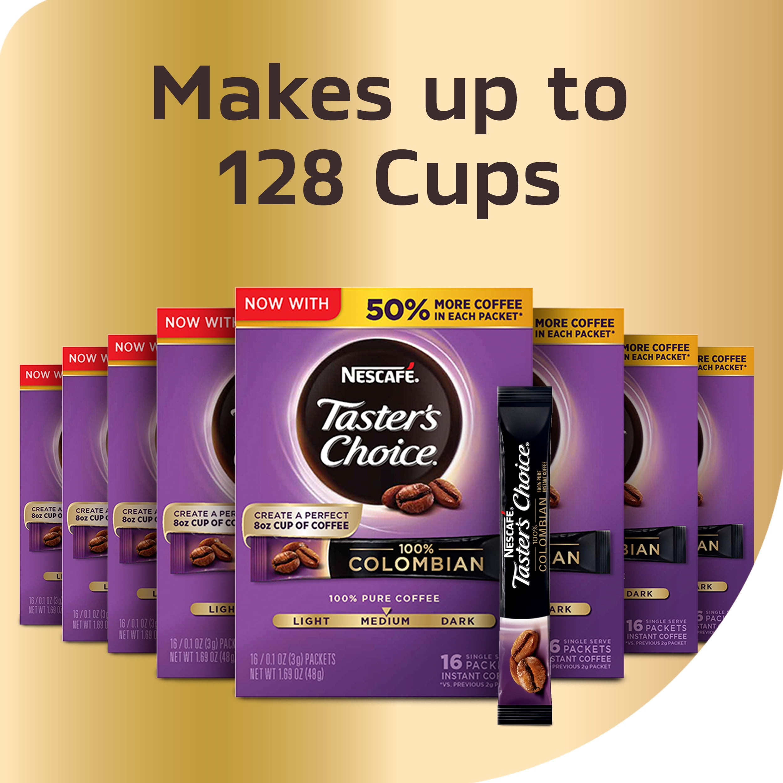 Nescafé Taster’s Choice Colombian, Medium Roast Instant Coffee, 128 Ct (8 Boxes of 16)