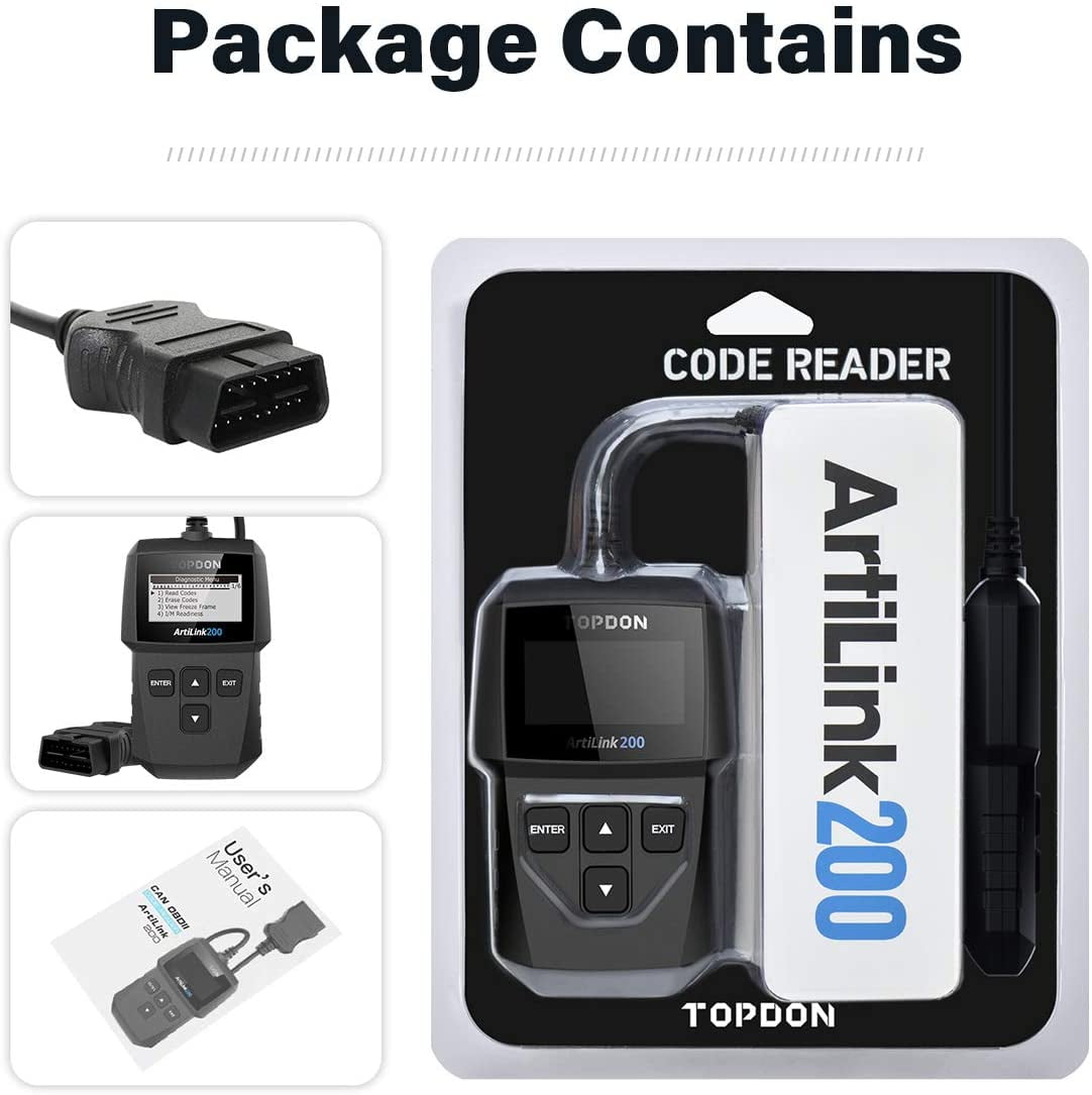 Code Reading/Scanning – AL200 OBD2 code reader works on MOST 1996 and newer vehicles, regardless of makes and models sold in the US, Europe, and Asia. It can help you read DTCs (diagnostic trouble codes) when the MIL is on. Additionally, the built-inDTC library helps find the related code definitions, to determine the root cause of the Check Engine Light, saving you from searching online.