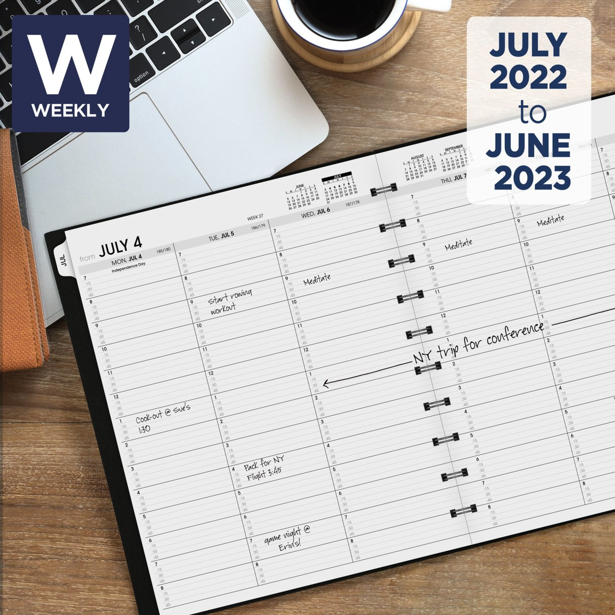 Stay apprised of meetings, appointments and more with an academic planner. This weekly/monthly planner has untimed blocks, so you can pencil in events and jot down notes however you see fit. 2 pages per week/month. Reference calendar helps you plan future events. Untimed appointments let you customize your schedule. 12 months: July to June. Pages are spiral-bound with a durable polypropylene cover.