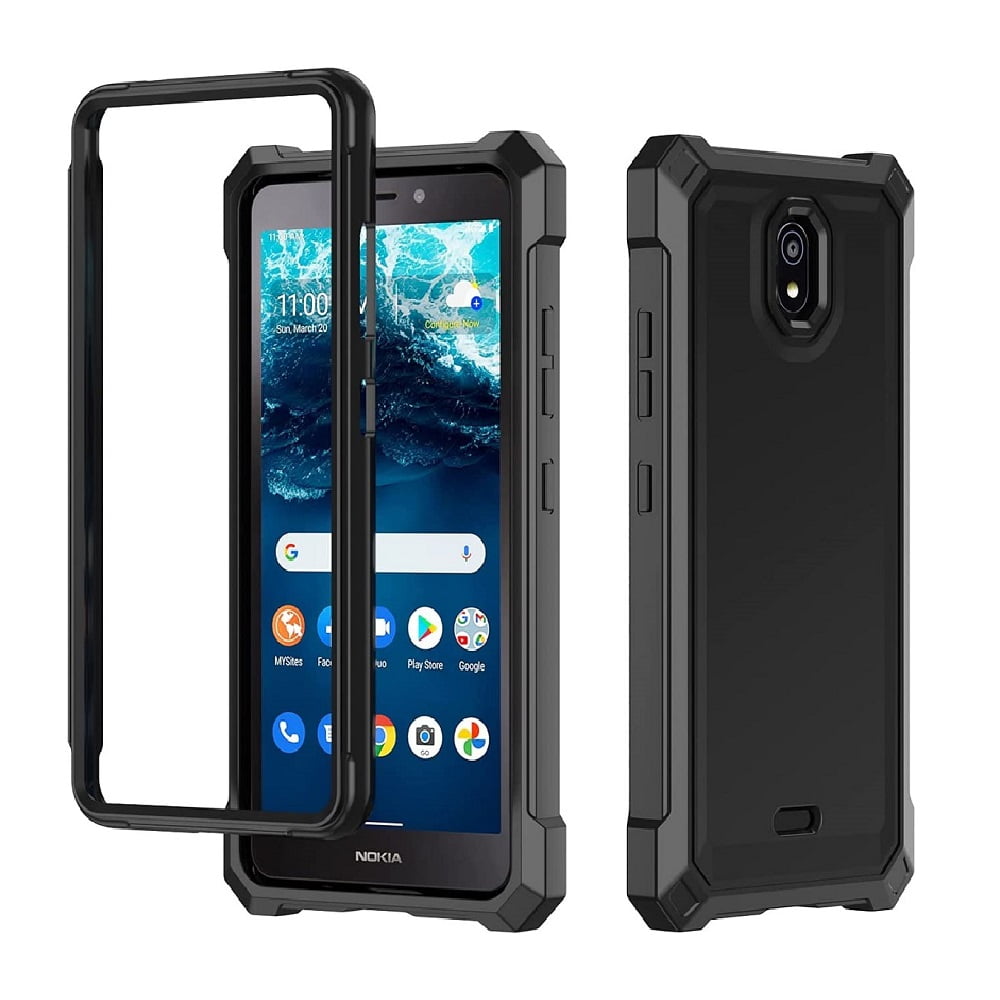 Compatible with: Nokia C100 (Straight talk, TracFone, Walmart Family Mobile, Simple mobile, Consumer Cellular, Total Wireless). Black Color Cover TPU Case, shock resistant. Premium Protection: Impact resistant TPU rubber equipped with Shock Absorption Technology provide better protective. Full body cover case offers double protection for front & back of your phone. Protect your phone from scratches, bumps and other daily damage. A separate tempered glass screen protector is include to provide protection for the phone’s screen against scratches. (**Note: It is not a built in Tempered glass screen protector).