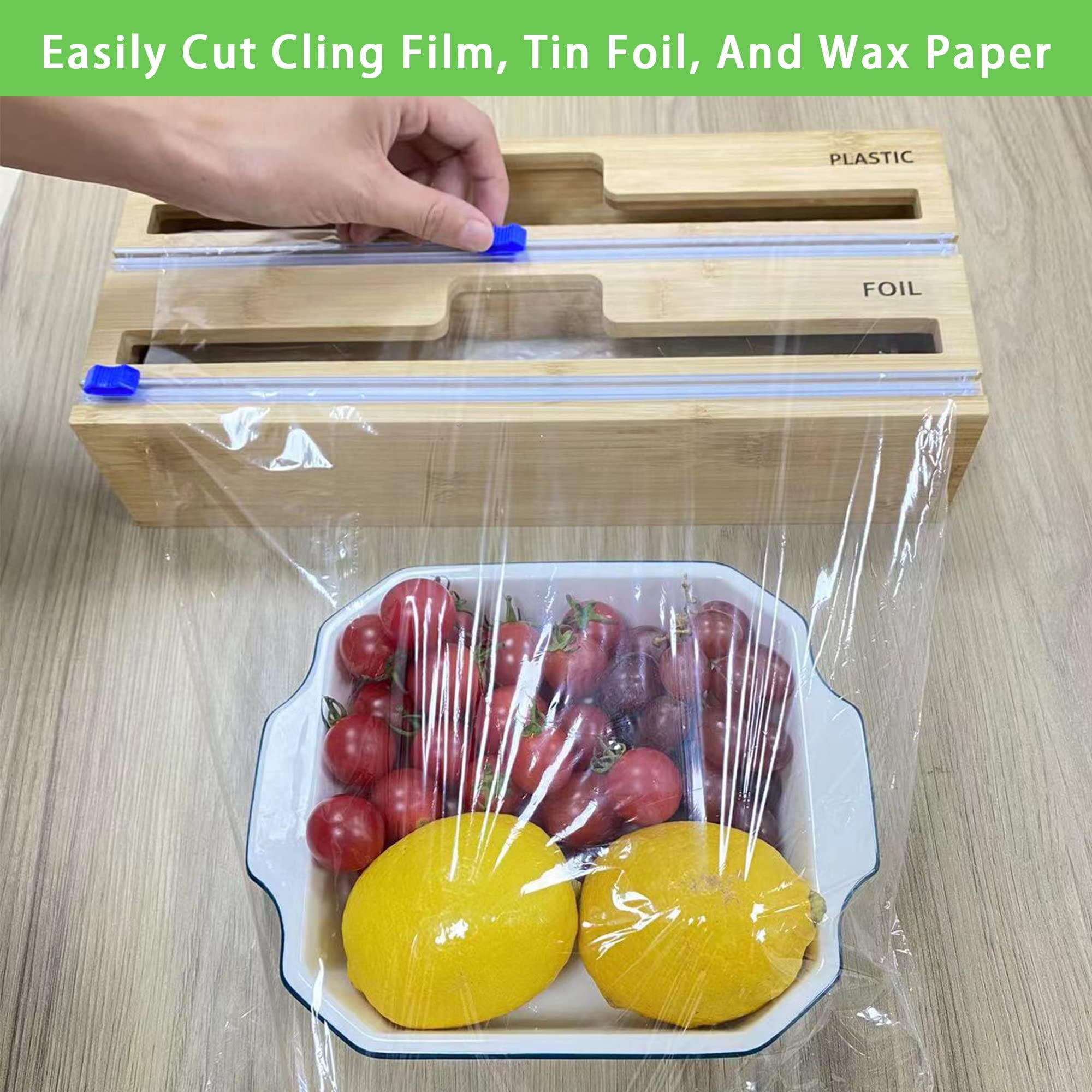 Make your drawer neat and organized with this bamboo wrap dispenser.Our cling wrap dispenser has the bidirectional and hidden cutting knife provides perfect dispensing and cutting, with sliding cutter for every slot, smoothly cutting the wraps, safe design that can’t hurt your fingers.