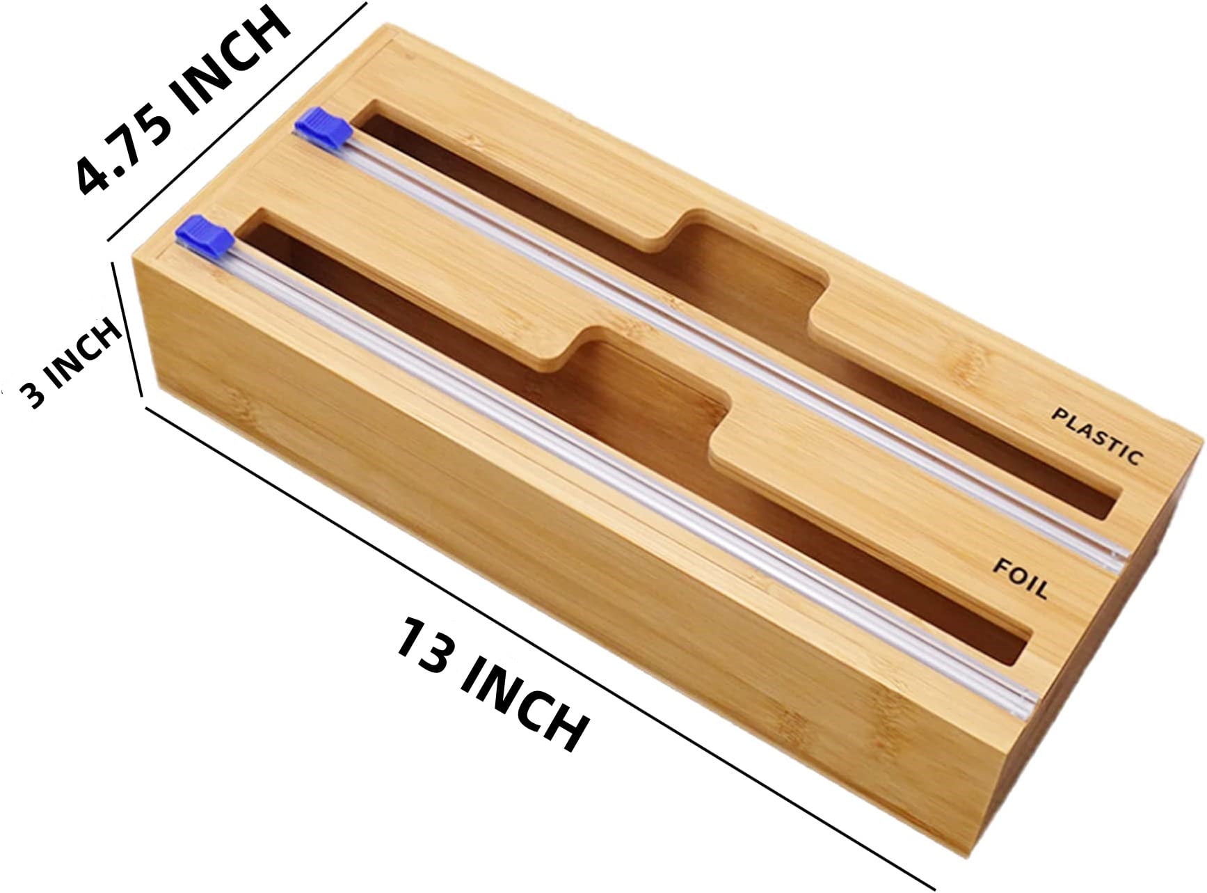 Ziplock Bag Organizer, Happiwiz Plastic Wrap Dispenser with Cutter, Wrap Aluminum Foil and Wax Paper Dispenser for Kitchen Drawer, Bamboo Roll Organizer Holder, Compatible with 12" Roll
