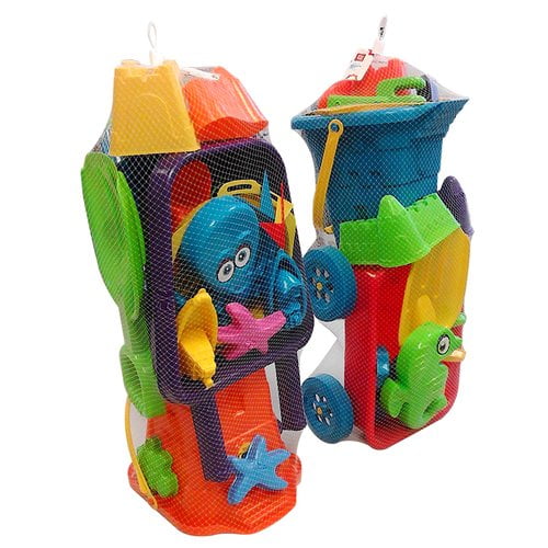 This Play Day 20-Piece Beach Toy Set is ideal for kids to have some fun in the sun. The small wagon is easy for little hands to work with, the pail and shovel are always fun to use with the sand sifter, and the castle forms will complete the afternoon’s fun on the beach or even in your own backyard. The adorable kids beach toys set has everything you need for big time entertainment and can even be used in the bathtub or pool. Make an ordinary day at the park or pool extra special with this Play Day 20-Piece Beach Toy Set. Dig, rake and pile, mold and build the sand castle of your dreams or dig for buried treasure and load it up in the wagon when you need to move it. No matter how ambitious the project, this set makes for a terrific play experience.