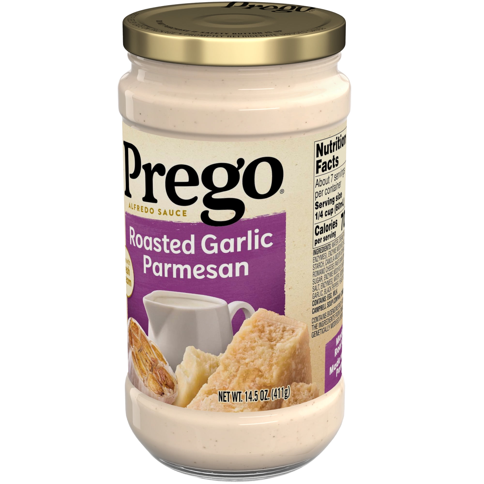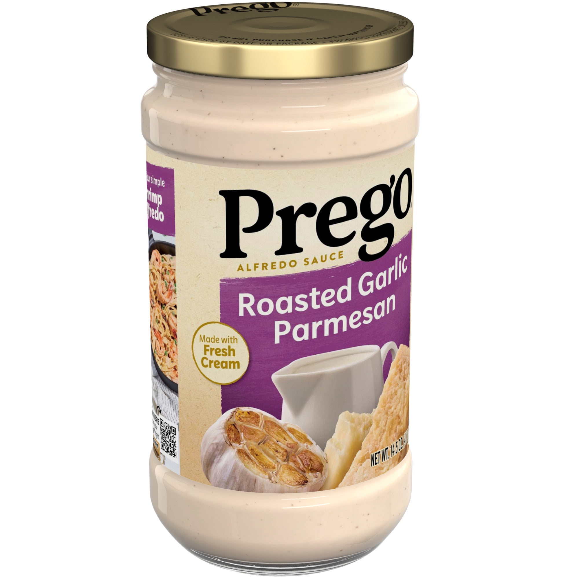 Be the hero at dinner with Prego Alfredo Sauce with Roasted Garlic and Parmesan Cheese. Versatile and delicious, this classic cream sauce features tangy flavor of parmesan cheese and a touch of roasted garlic for a taste the whole family will enjoy. This pasta sauce has a taste everyone loves and a thick texture that doesn’t water out, making it the perfect choice for fettuccine alfredo. This Prego pasta sauce is made with no high fructose corn syrup for an alfredo pasta sauce you can feel good about. Top off any pasta with Prego sauce for a quick, family-pleasing meal, or use it as a base for your favorite recipes. Give your family the taste everyone loves with Prego sauces.In addition to Alfredo Sauce with Roasted Garlic and Parmesan Cheese, Prego offers a variety of other crowd-pleasing favorites, including Classic Alfredo, Four Cheese Alfredo, and more!