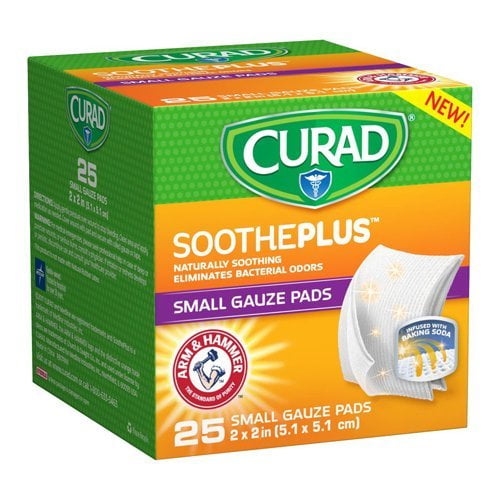 Curad Sootheplus Small Gauze Pads with Baking Soda, Arm and Hammer 2 X 2 in, 25 Ea