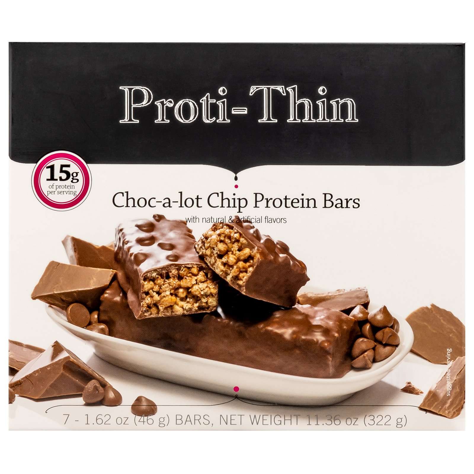 The Proti-Thin Choc-A-Lot Chip Bar tastes like a delicious chocolatey crisped rice treat. This bar also contains an amazing 15g of protein so it’s a perfect addition to any weight loss program!