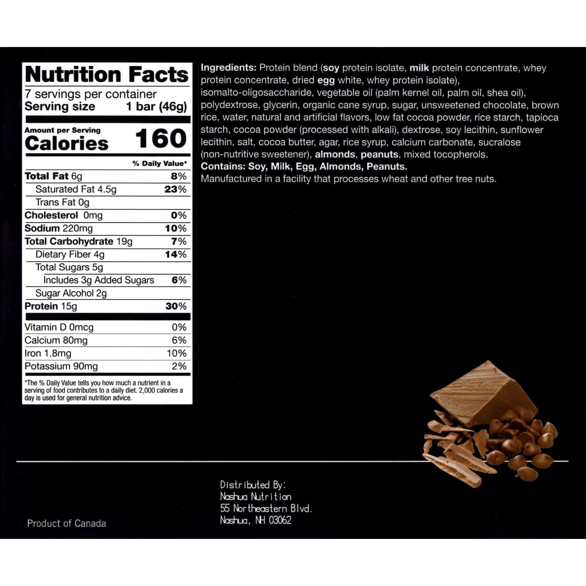 | Serving Size: 1 Bar (45g) | Servings Per Container: 7 | ||