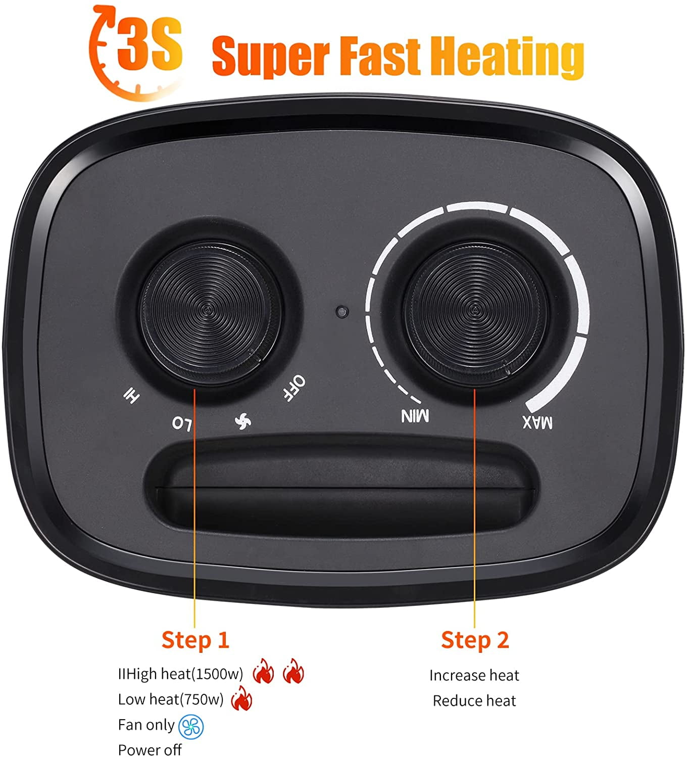 - ADJUSTABLE THERMOSTAT: The small portable heater can according to the thermostat setting let your room remain at a comfortable temperature with combined with an adjustable thermostat control, Also allows you to adjust the heater’s 1500 watt ceramic heating element.
