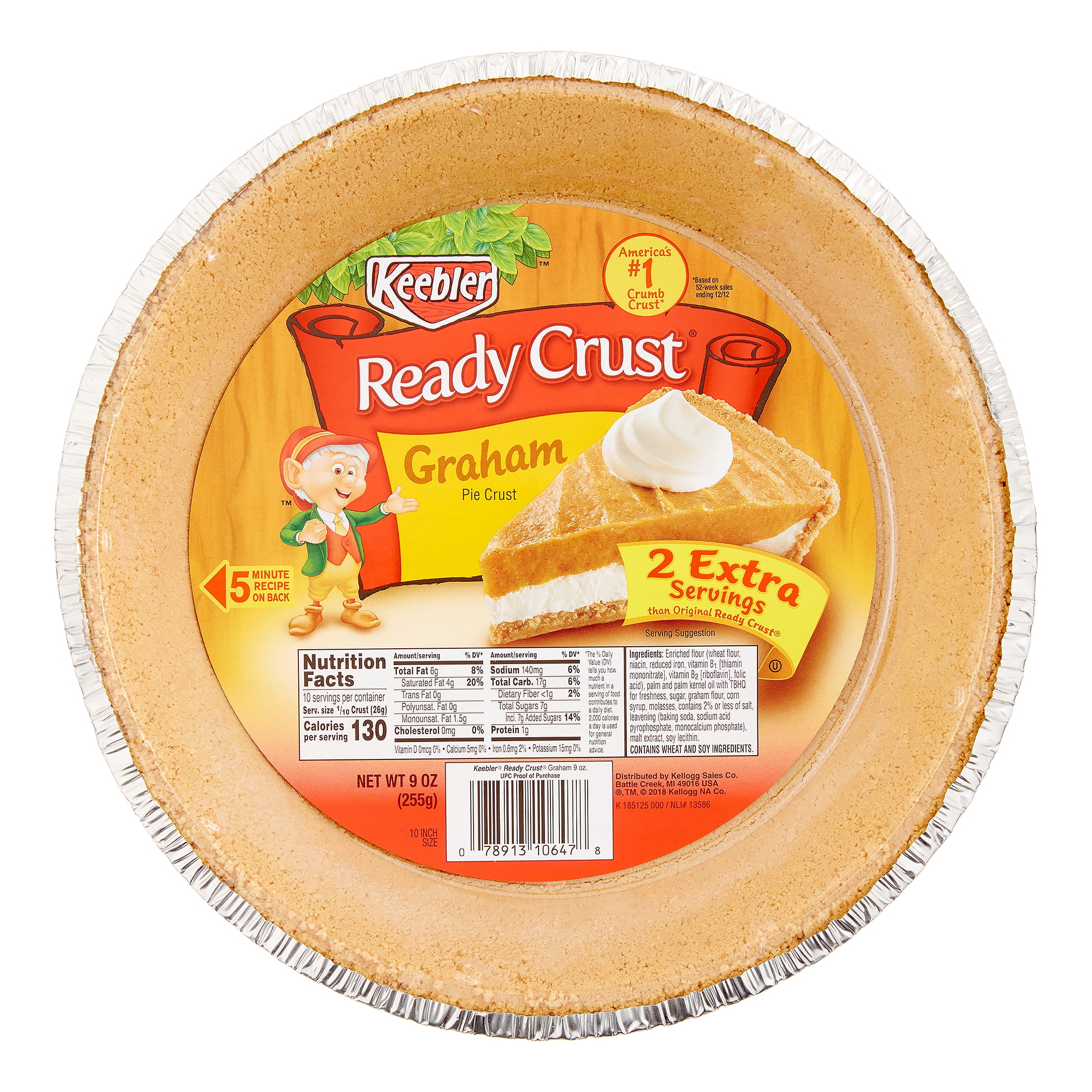 Your favorite desserts just got that much tastier thanks to Keebler Ready Crust Graham Pie Crusts. Deliciously sweet and with a crispy texture, the Graham pie crusts are ready to use, and are the perfect base for no-bake recipes, pies of all kinds, tarts, and more. With a 10-inch pie shell, these crusts provide 2 extra servings compared to our Original Ready Crust. No matter the occasion, Keebler Ready Crust Graham Pie Crusts are convenient, delicious,?and made to help get great desserts off to the right start.Ready Crust Keebler 10in Graham Pie Shell 9oz