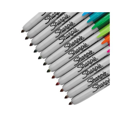 Forget about a cap–just click and create These markers are easy to use, bold to the max, and permanent to the core, inspiring you to transform ordinary surfaces into passionately creative statements. Made to write practically everywhere, vivid Sharpie markers eliminate dull and boring. Sharpie has iconic ink that dries quickly and resists both water and fading. While pale imitations wither away, Sharpie markers make creations that endure. And these retractable markers have a safety seal valve design that helps prevent the ink from drying out. Featuring a convenient design for one-handed operation with no cap to remove or lose, Retractable Sharpie Permanent Markers make courageous self-expression as easy as can be. Marker Ink Type: Permanent Marker Tip Type: Bullet Marker Tip Size text: Fine Marker Colors: Assorted.
