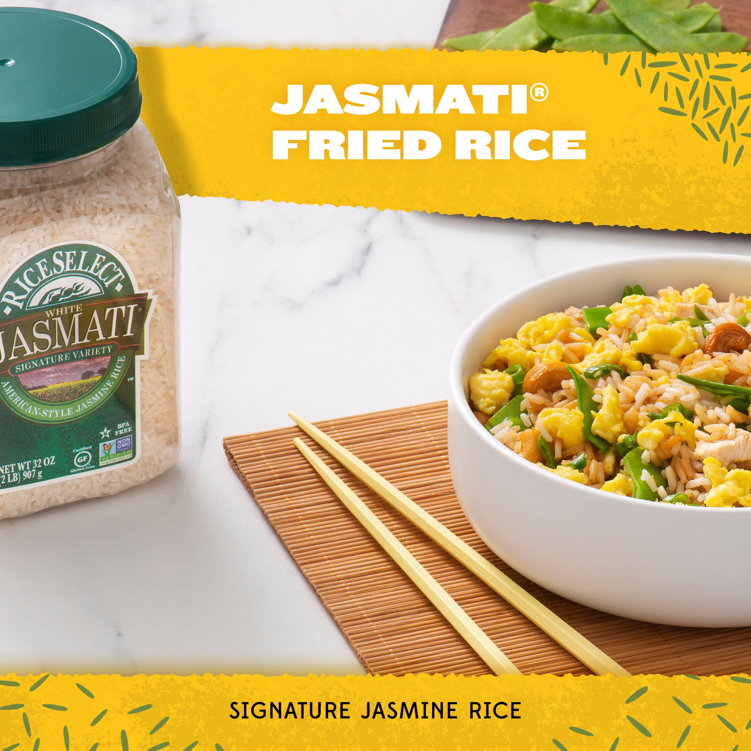 Bring your spontaneous brilliance to the kitchen and create an unforgettable meal with RiceSelect Jasmati Rice! RiceSelect Jasmati Rice is our proprietary, unique hybrid of American long-grain and Jasmine rice designed for a home cook as thoughtful and discerning as you. Our signature Jasmati rice beckons with an intoxicating aroma, exquisite texture, and pronounced-yet-subtle flavor, making it ideal for culinary exploration. With a quick cook time of 15 minutes, this versatile grain is perfect for welcoming new flavors or reinventing familiar recipes. Its snowy-white color and soft and tender grains make Jasmati an ideal choice for Asian cuisines, such as curry, stir fry, fried rice, salads, and rice puddings. Jasmati rice is low in fat, cholesterol free, has no additives or preservatives, and is suitable for vegans and vegetarians. For your convenience, our RiceSelect Jasmati Rice is Non-GMO Project Verified, Certified Gluten-Free, Certified Kosher by Star K, and packaged in a 32-oz 100% recyclable, BPA-free jar.