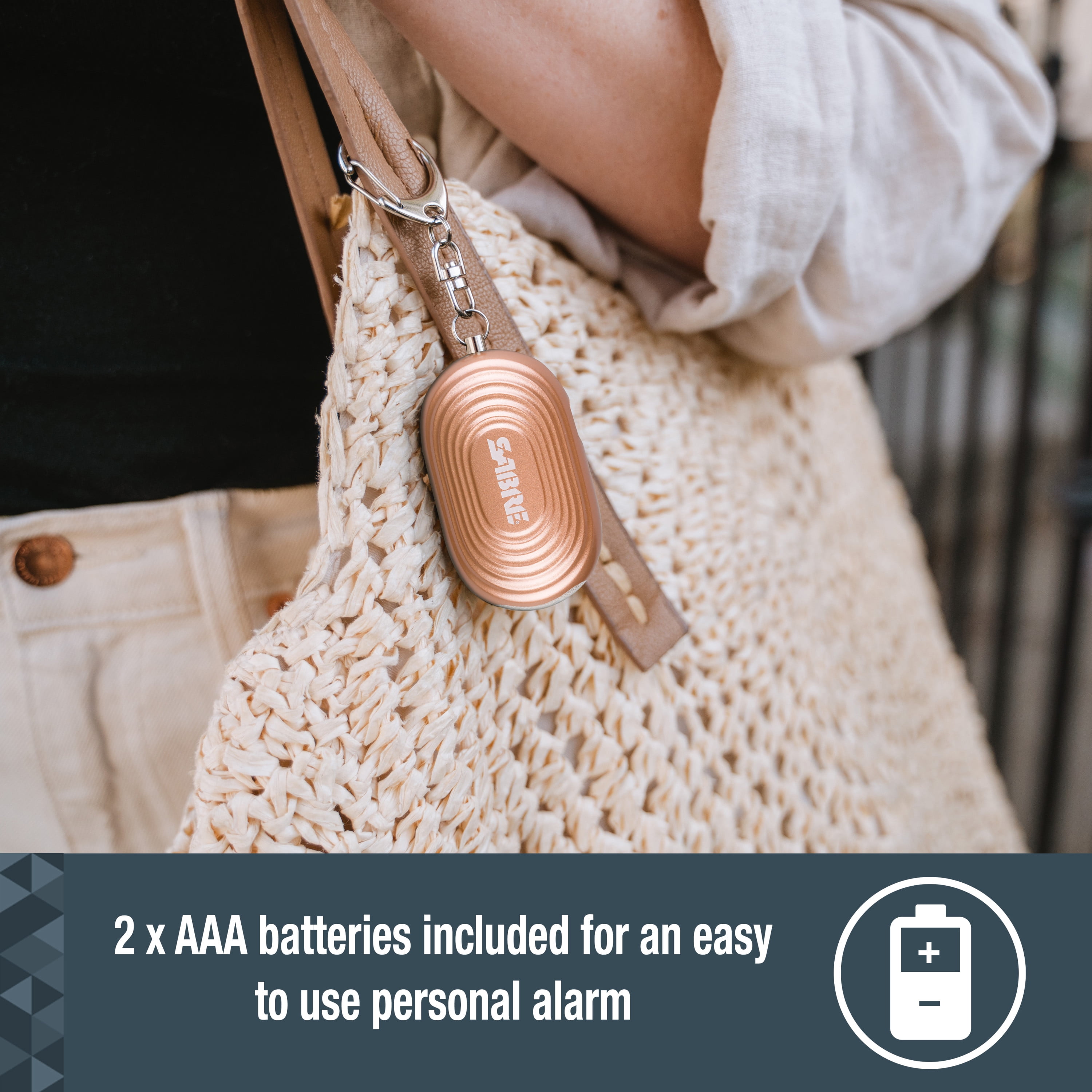 SABRE 2-in-1 Personal Alarm with LED Light and Snap Hook Keychain, Rose Gold