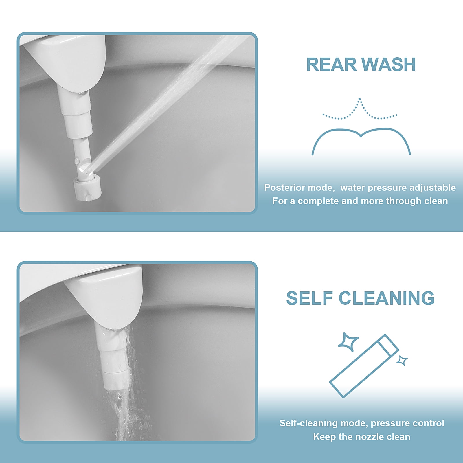 【SELF-CLEANING FUNCTION】: Self cleaning bidet toilet seat attachment.When the rotation controller rotates to the right, it is the posterior mode, while the rotation to the left is the self-cleaning mode. The self-cleaning mode can clean the nozzle, keep the nozzle clean and reduce the pollution of the nozzle. SAMODRA bidet gives you a cleaner experience.