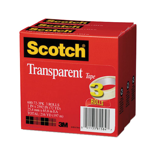Scotch Transparent Office Tape is a glossy tape that is crystal-clear for a professional appearance. Instant adhesion delivers excellent holding power for your most critical taping tasks. Clear when applied, it doesn’t yellow with aging. Tape pulls off the roll smoothly and cuts easily. It is ideal for multipurpose sealing, label protection, general-purpose wrapping and mending. Tape is also photo-safe (determined in accordance with ISO Standard 18916). More from the Manufacturer