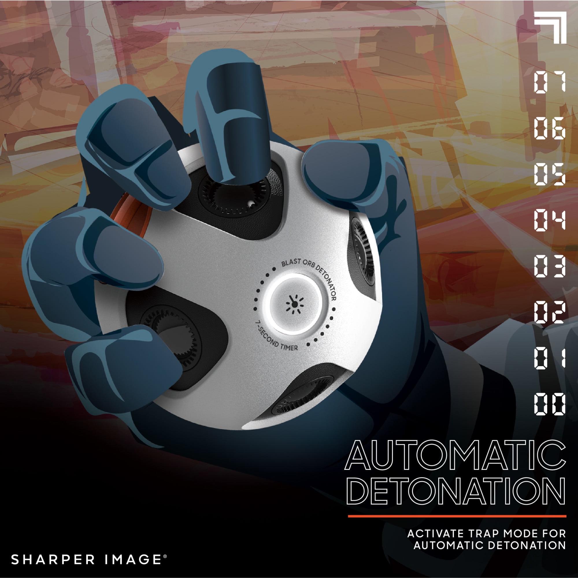 The Sharper Image Self-Detonating Infrared Bomb with Booby Trap Mode is the perfect addition to your arsenal of weaponry. Throw the bomb in a room and watch lasers shoot in every direction, detonating on your opponent and securing your victory. To detonate the bomb, simply press the timer and roll it into any room. After seven seconds, an explosion of lasers will clear out any room and leave your opponents defeated! Activate booby trap mode to lock your opponent in a space and limit their mobility. The motion-activated bomb will detonate as soon as your opponent makes one wrong move!