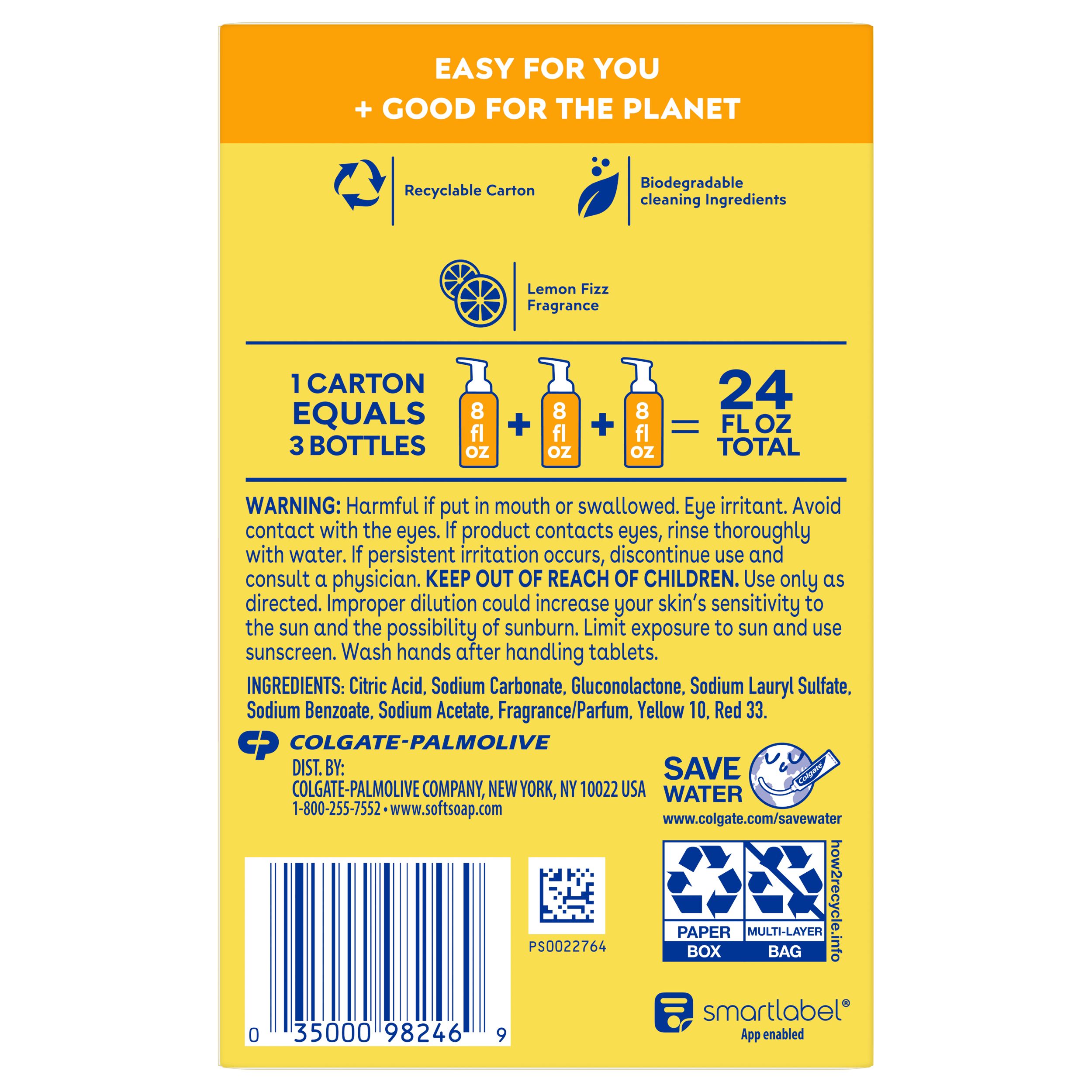 - LEMON FIZZ SCENT: Softsoap hand soap tablets might be small, but they’re packed with the refreshing fragrance of lemon that will sparkle once you fill, drop, foam