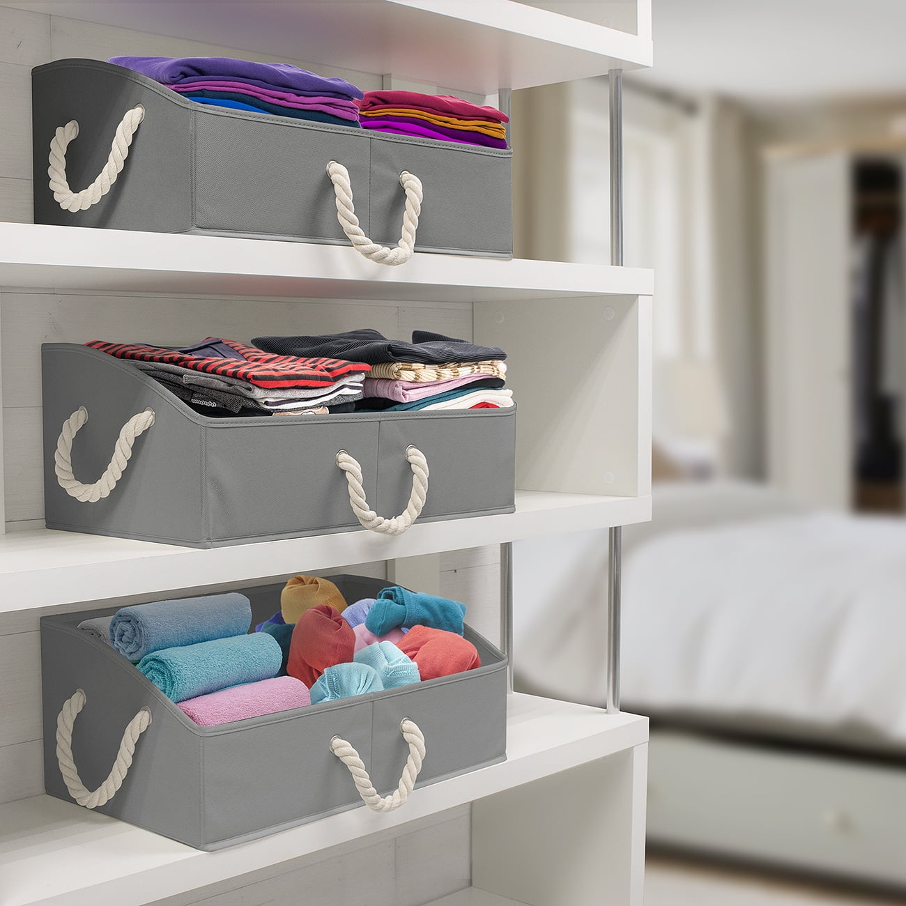 - Note (4.33 pounds) Sorbus Trapezoid Storage Bin Box Basket Set Foldable with Cotton Rope Carry Handles – Great for Closet, Clothes, Linens, Toys, Nursery – Non-woven Fabric – (3 Pack, Grey)