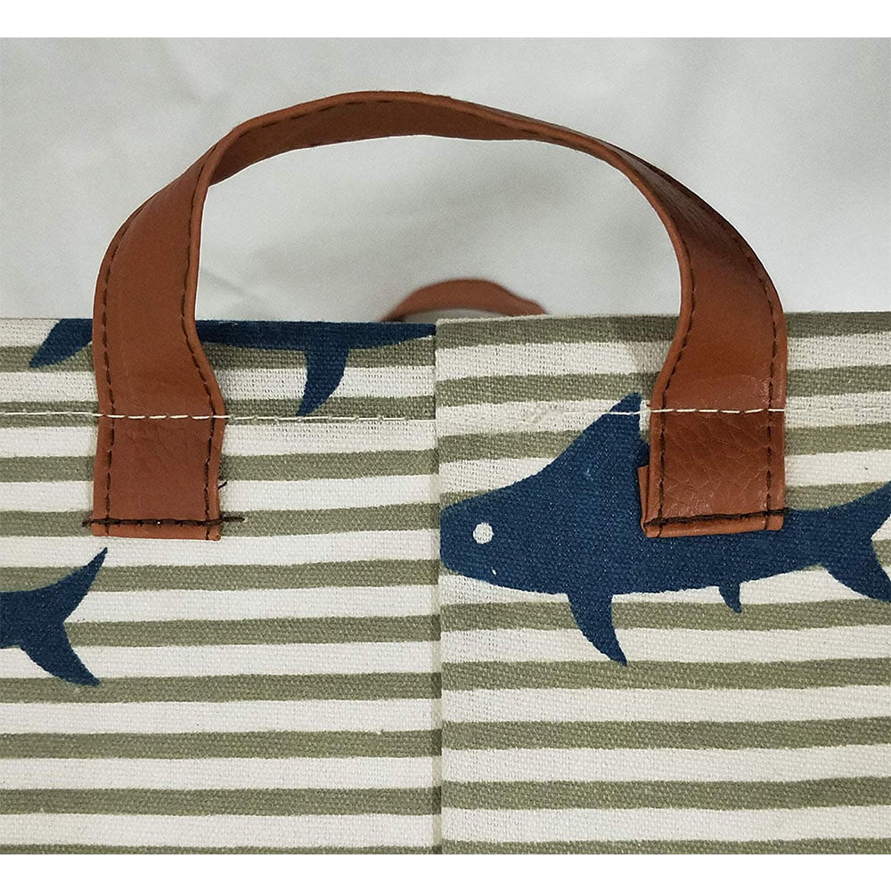 Square Fabric Storage Bin – Waterproof hamper | Collapsible Square Fabric Basket with Handles for Kids Room,Shelf Basket,Toy Organizer ( Square Shark )