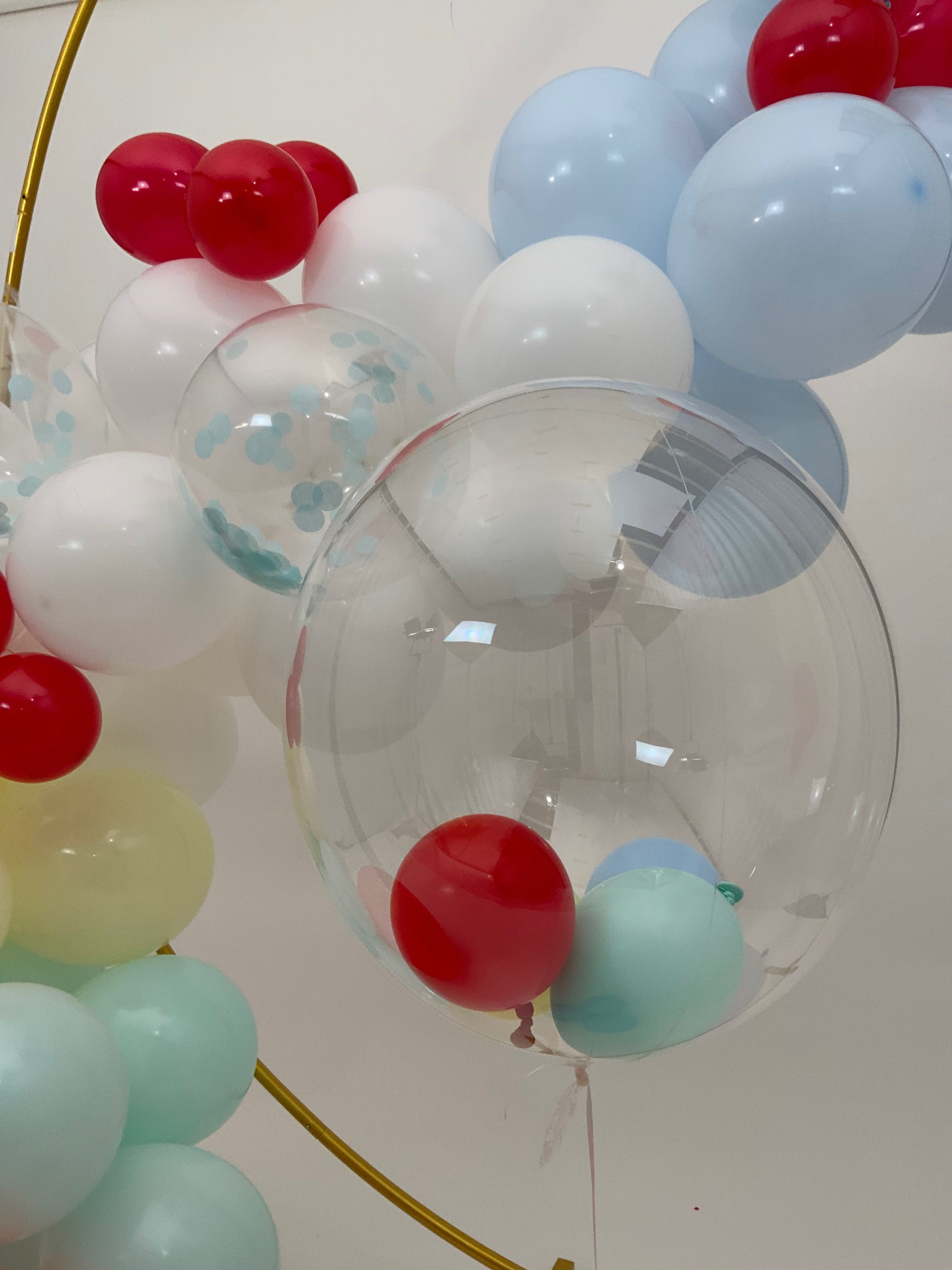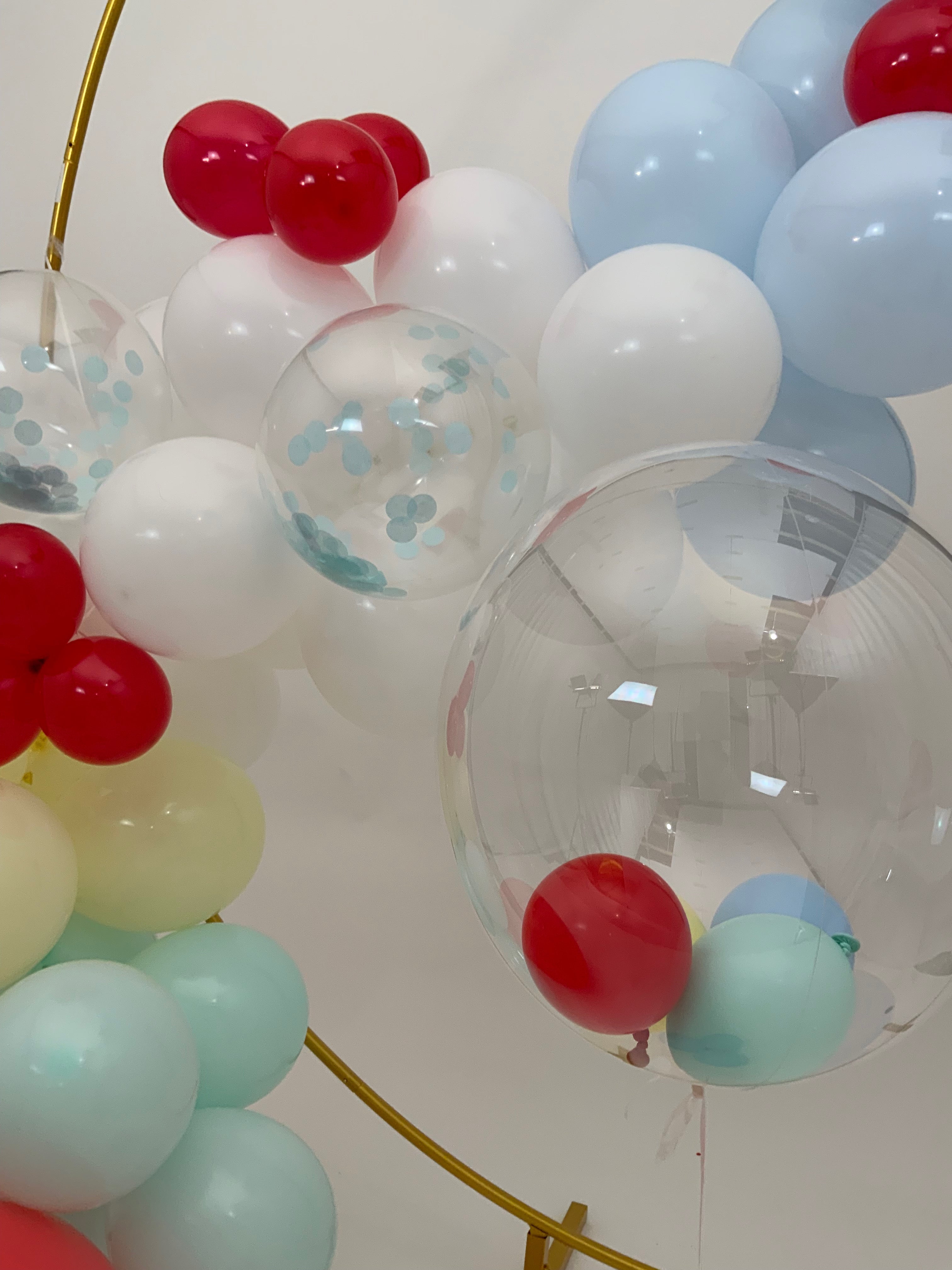 FUN DECOR WITH EASY ASSEMBLY: Do it yourself a great decoration in about 30 minutes for a great party with beautiful balloons that come in different styles and sizes. The set includes bobo, confetti, and latex balloons. Blow up balloons (preferably with a pump, sold separately), then knots, pull the balloon knot through the tape strip hole, mix different size balloons as you wish. Skip holes if balloons are too tight.